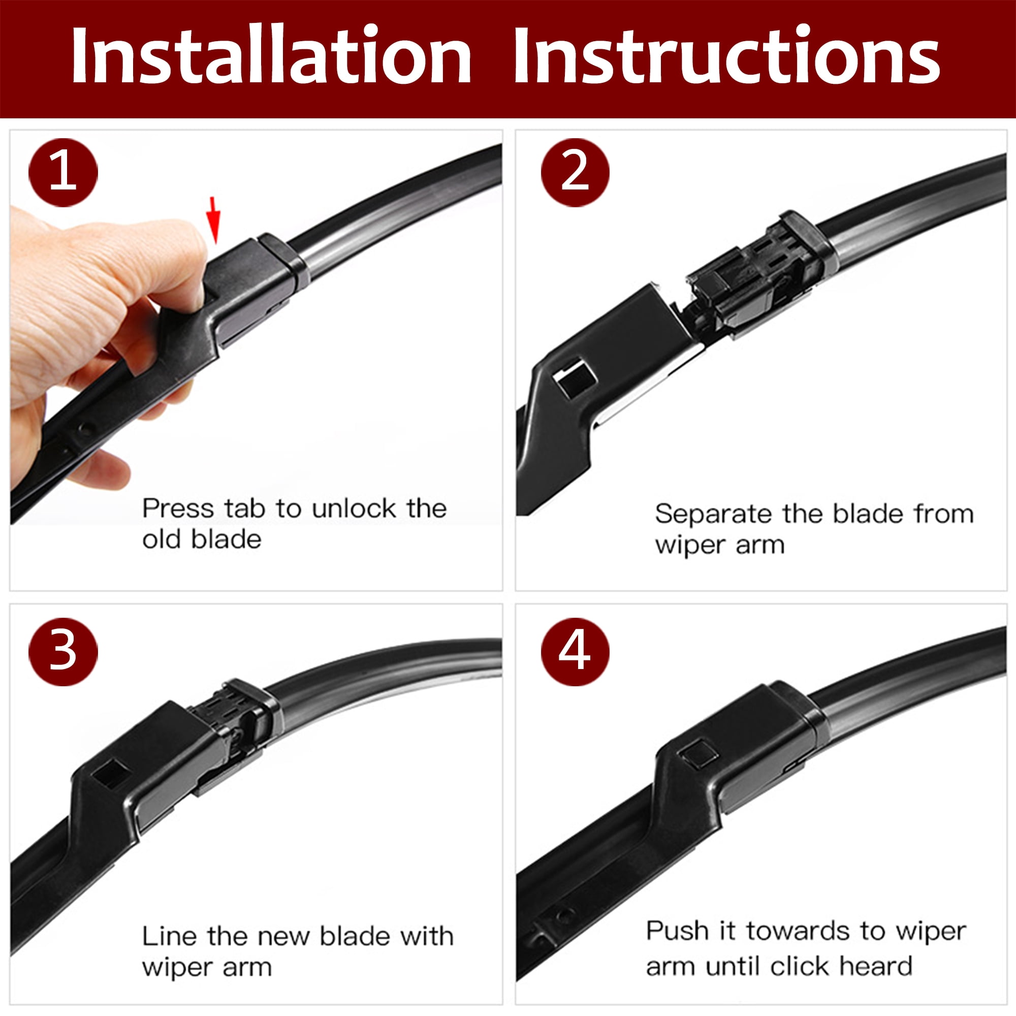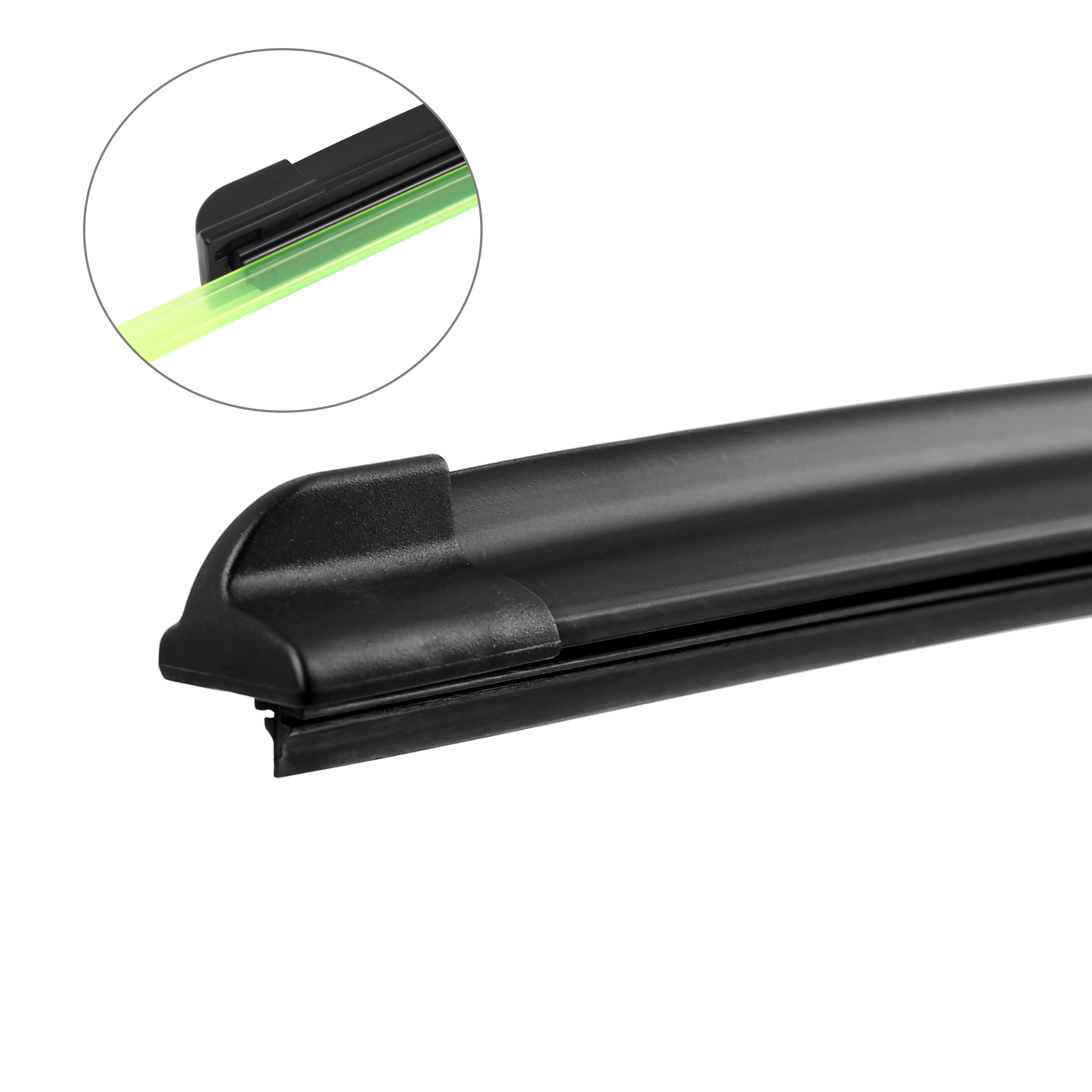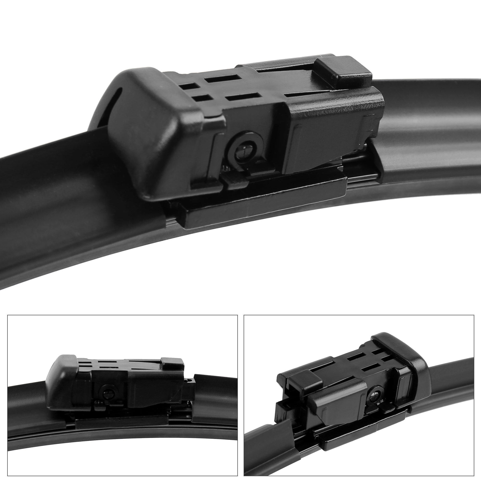 It is durable that provides a direct replacement of the old ones. The front wiper offers an OE fit for specialty front applications. Wear-resistant rubber wiping edge contributes to long service life. Replacing your damaged or worn-out windshield wiper blades is an important and simple part of regular car maintenance. Normally wiper blades should be changed half a year or so, and you’ll know they need replace when the rubber begins to wear or crack. You may also notice that the wiper blades start to smear water, leave a film on the windshield or wipe water unevenly. This is a Non-OEM product, accessory only!