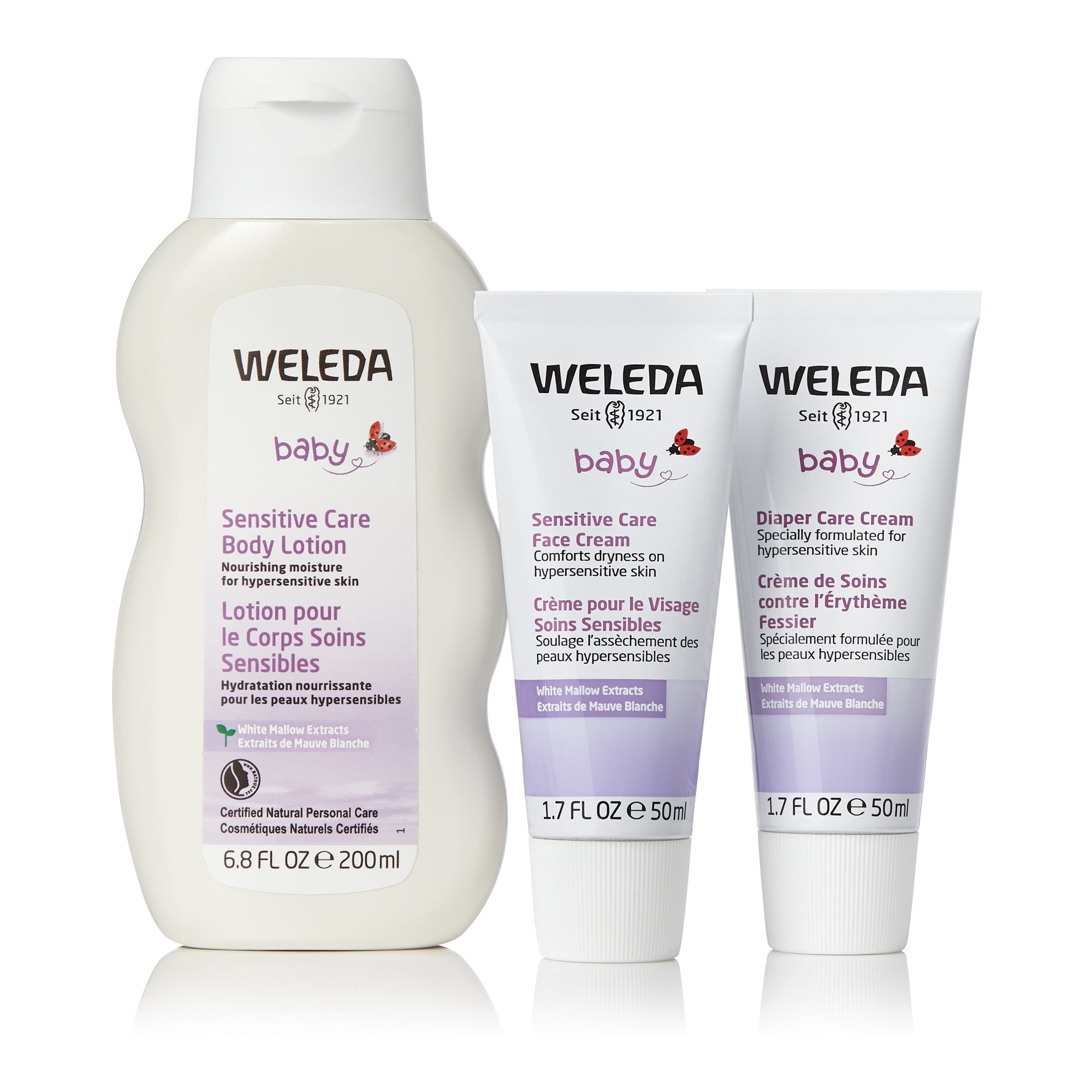 White mallow extract swaddles the baby in a cooling layer, pansy extract soothes, coconut, and sesame oils nurture the skin. This Weleda Baby Sensitive Care Body Lotion provides a pleasant cooling sensation on the skin. Thanks to the carefully-selected ingredients, our White Mallow Body Lotion has a pleasant, mild scent without essential oils. Essential for delicate skin that needs soothing. Awarded the National Eczema Association Seal of Acceptance, this mild lotion moisturizes sensitive skin and relieves itching caused by dryness. Organic white mallow and pansy extracts soothe the baby’s dry skin and promote the development of healthy-looking skin. How to Use: For especially dry skin, apply lotion twice a day, morning and night, to keep skin healthy-looking and moisturized. Also suitable for sensitive adult skin.