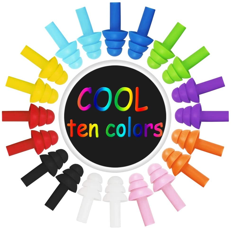 - 10 Assorted Colors: come with 10 pairs (20pcs) soft silicone earplugs with 10 colors (orange, red, light blue, dark blue, green, yellow, black, white, purple, pink ), super value pack for your family or friends.