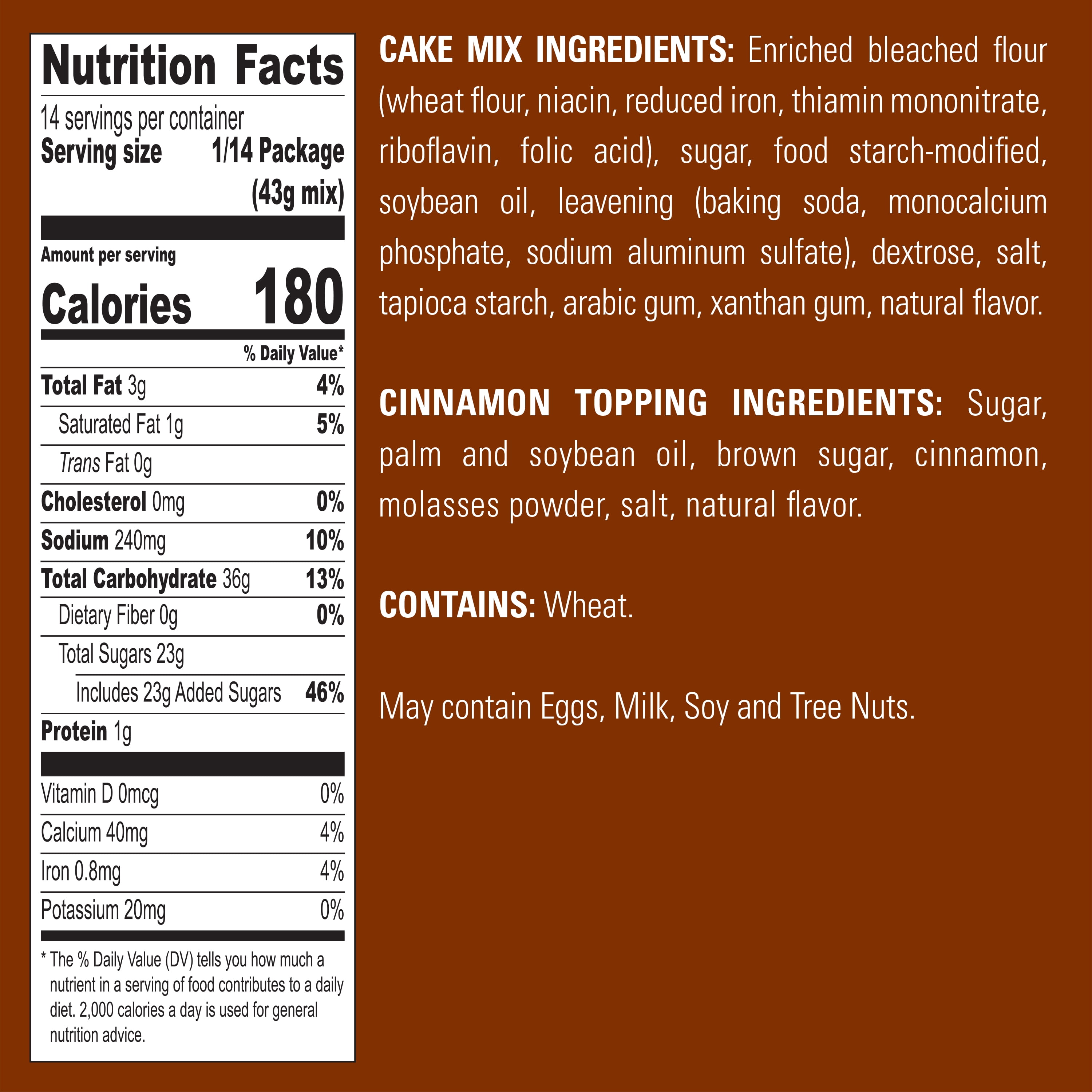 - EASY TO MAKE: Stir together cake mix, oil, water and an egg, pour into pan and sprinkle with cinnamon topping. Bake until a toothpick comes out clean.
