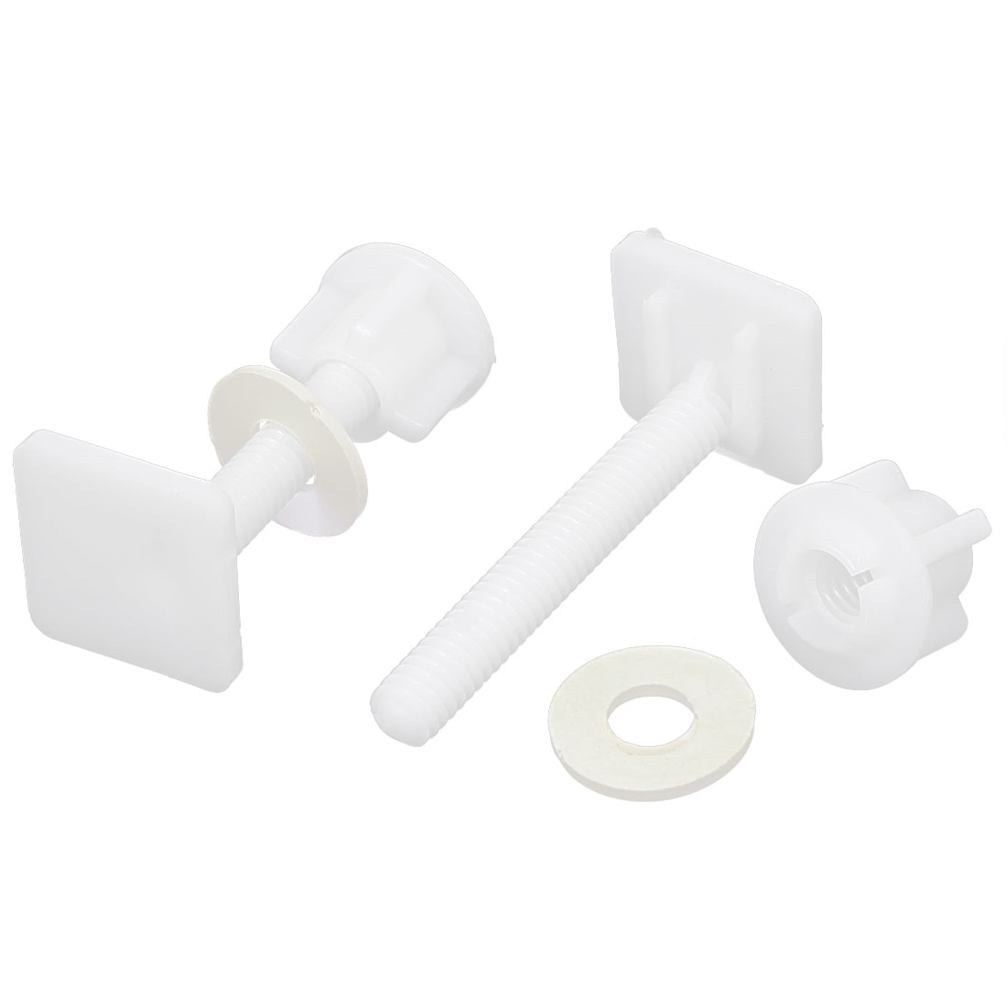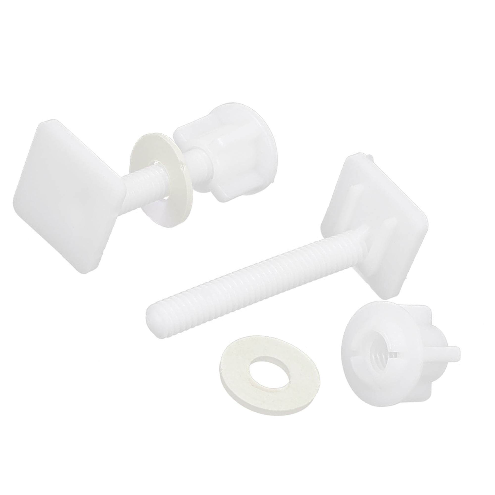 Plastic toilet hinge bolt for top mount toilet hinges. Uxcell 8mm Thread Square Shaped Toilet Seat Hinge Bolts Nuts White 2 Pack. Made of tough plastic material, never rust for long time use. Package Contents: 2 bolts, 2 nuts, 2 washers, the installations part are included here, you can install it easily by yourself. Toilet Seat Hinge Bolts Nuts are a good replacement for your broken one.Uxcell 8mm Thread Square Shaped Toilet Seat Hinge Bolts Nuts White 2 Pack