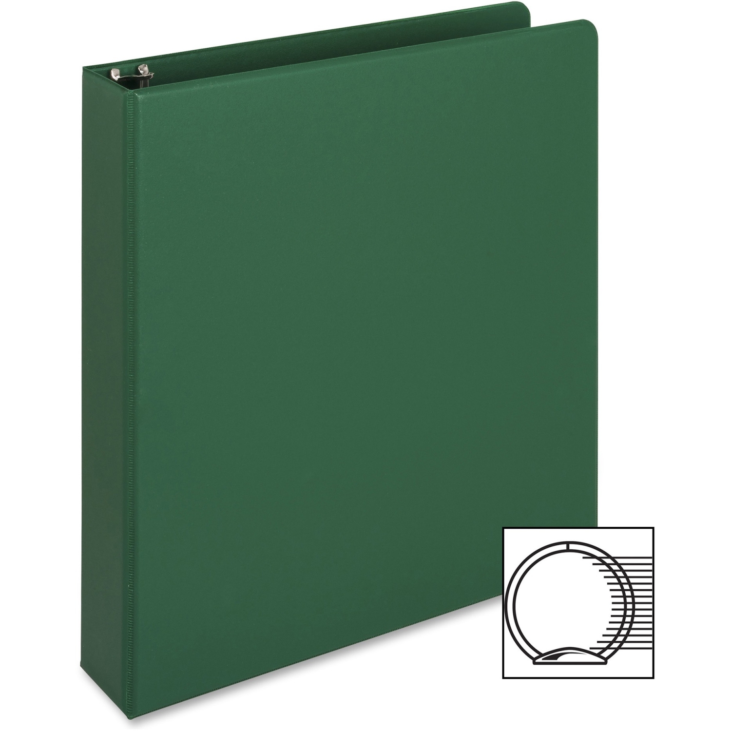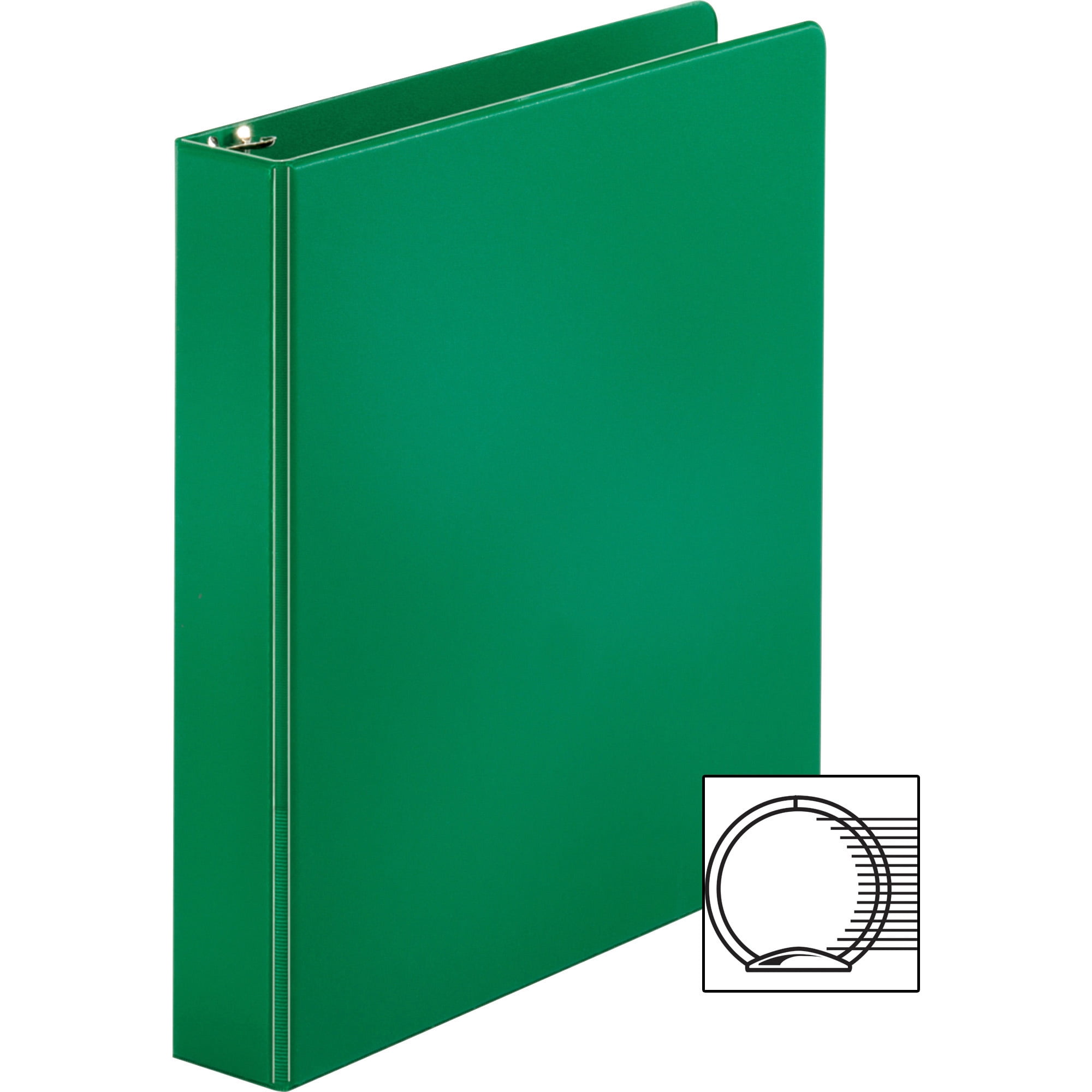 Basic round-ring binder features two triggers on the ring mechanism that provide easy access to your documents. Back-mounted metal rings allow pages to lie flat. 1-1/2" capacity holds up to 350 sheets. Clear pockets inside front and back covers offer extra document storage with a 30-sheet capacity for each pocket. Design also features a sturdy chipboard core and exposed rivets. Three-ring binder is made of polypropylene.