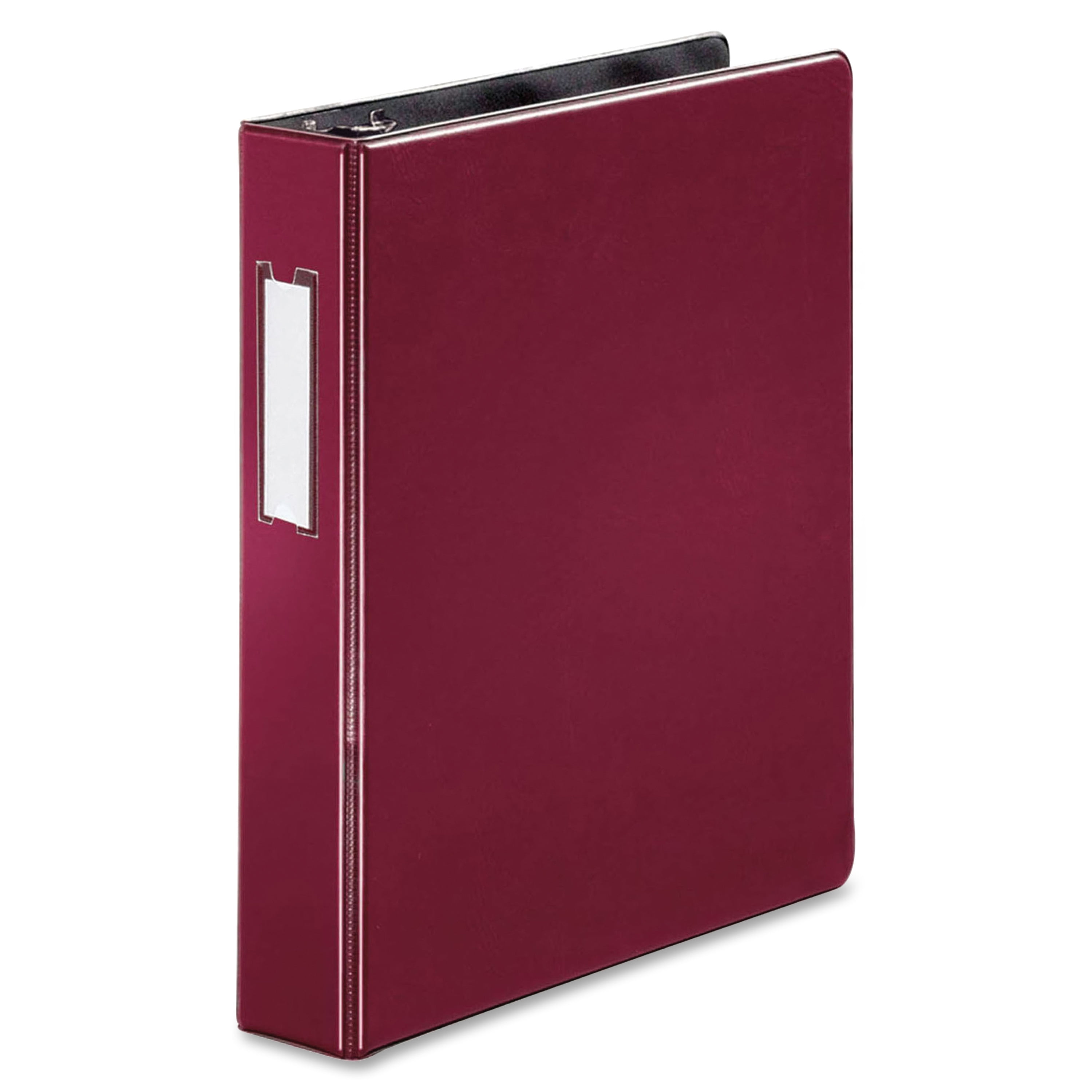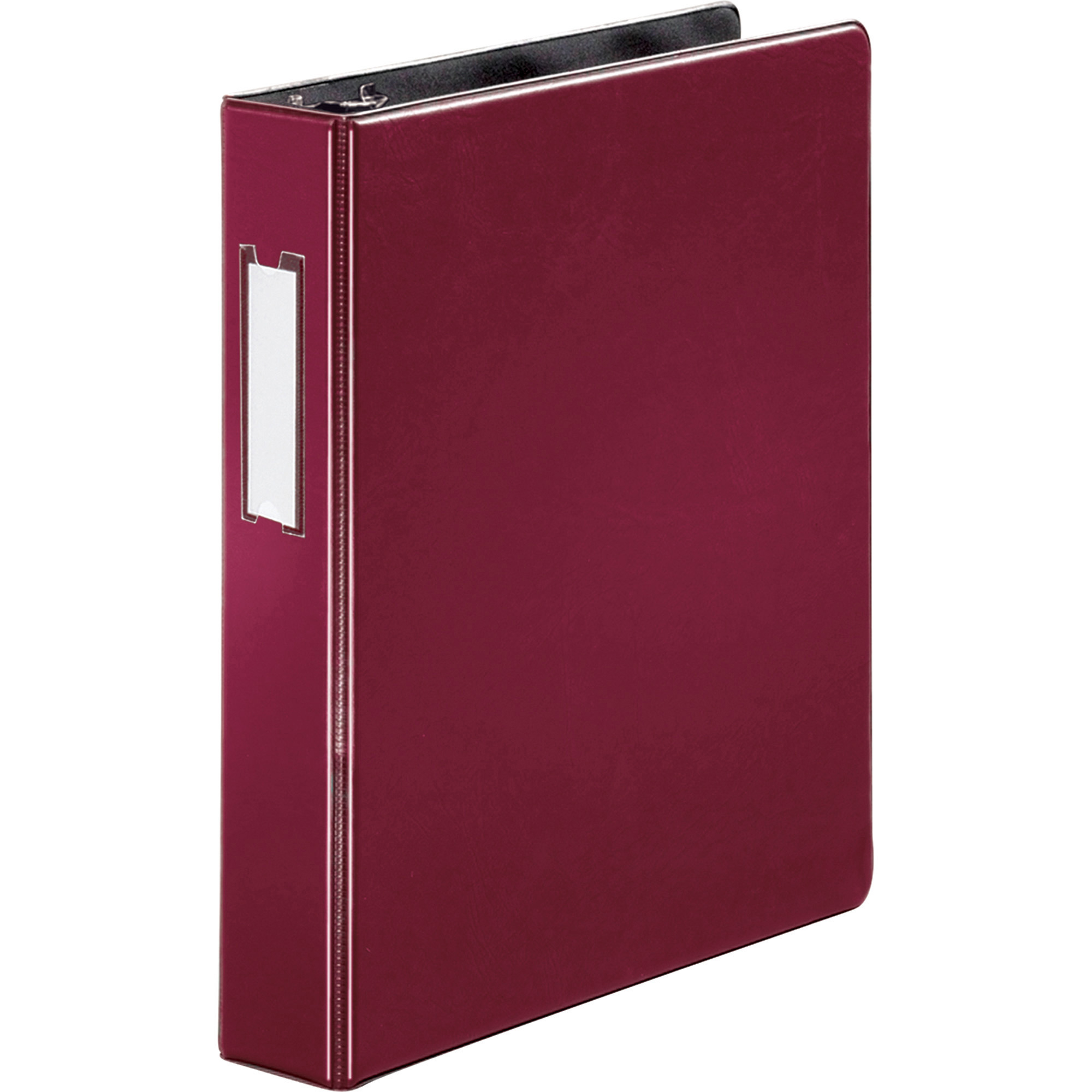 Binder features slanted D-rings to hold more sheets and allow lay-flat visibility. Transparent label holder on the spine lets you quickly find the binder you need. Interior pockets conveniently keep your loose files and papers easily accessible. 1-1/2" back-mounted rings hold up to 375 sheets of paper. Binder is perfect for large projects, training manuals, reports, presentations and more. Business Source 1. 5" D-Ring Binder, Burgundy, 1 Each (Quantity)