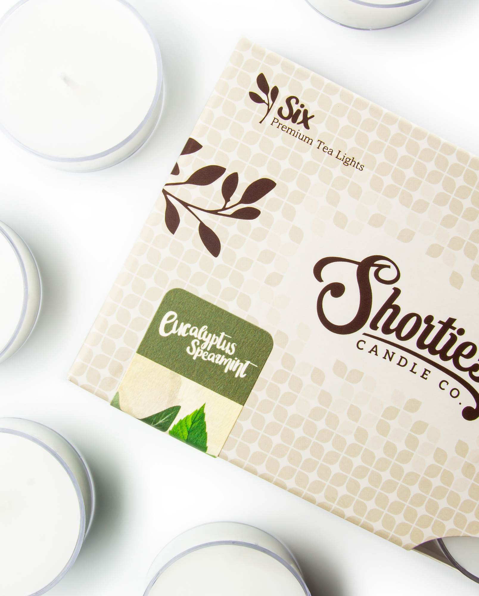 - Our Eucalyptus Spearmint Tea lights are hand poured with our classic food grade natural paraffin wax blend for great scent throw.
