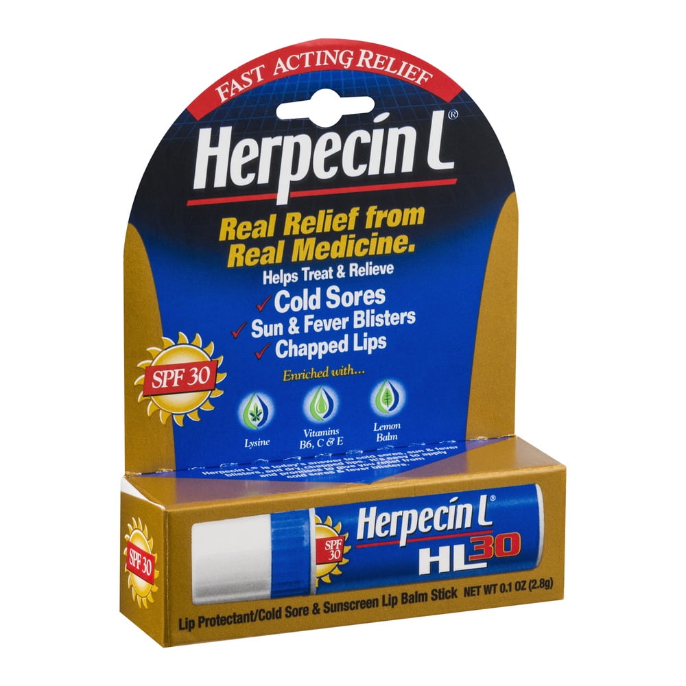 - HERPECIN L LIP BALM: Herpecin L helps treat, protect and relieve cold sores, sun and fever blisters, and chapped lips. It’s formulated with lysine, vitamins C, B6, and E, lemon balm and added SPF 30 protection.