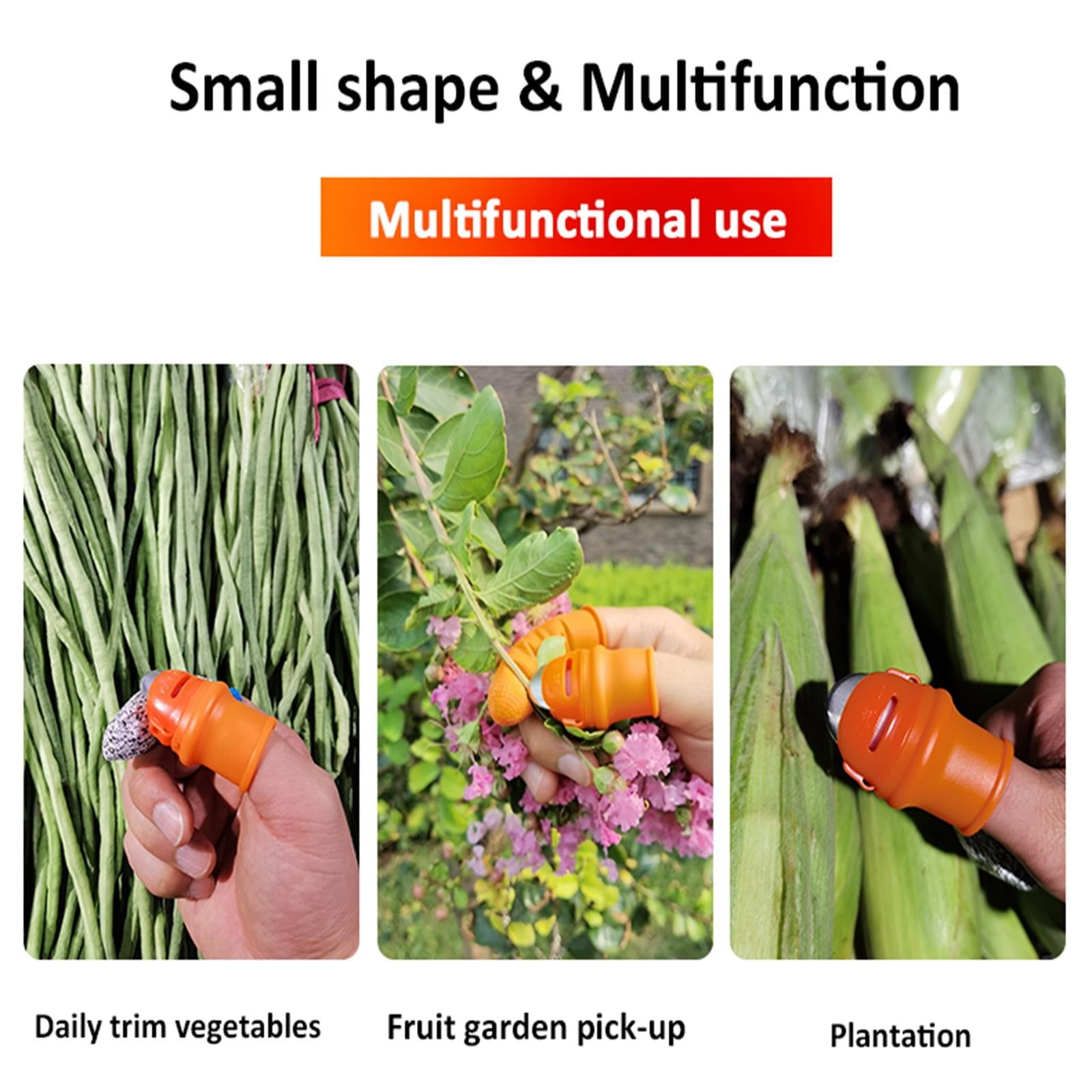 Household Storage Silicone Thumb Knife Gardening Knife Kitchen Tools Vegetable Picker Garden Tools Women Type M Product Description: Curved Blade Design, Made Of A-Grade Imported Stainless Steel, Easy To Cut In, Easy To Clean, Easy To Save Effort. Special Silicone Fingertips, Unique Elasticity Makes You Feel Comfortable When Wearing. Suitable For Picking Vegetables, Strawberries And Grapes As Well As Pruning Tree Branches. Picking Or Pruning With One Hand For Increased Efficiency. Adopt Five Grade Cut-Proof Finger Sleeve, Not Afraid Of Knife Cutting, Both Elastic And Breathable, Strong Protection.When Not In Use, Clean And Close The Blade Cover Away From Children. For: Cucumbers, Eggplants, Peppers, Tomatoes, Beans, Watermelons, Melons, Grapes, Strawberries, Cherries, Citru S And Other Fruits. Product Content: 1×Thumb Knife 1 X Cut Resistant Finger Cots