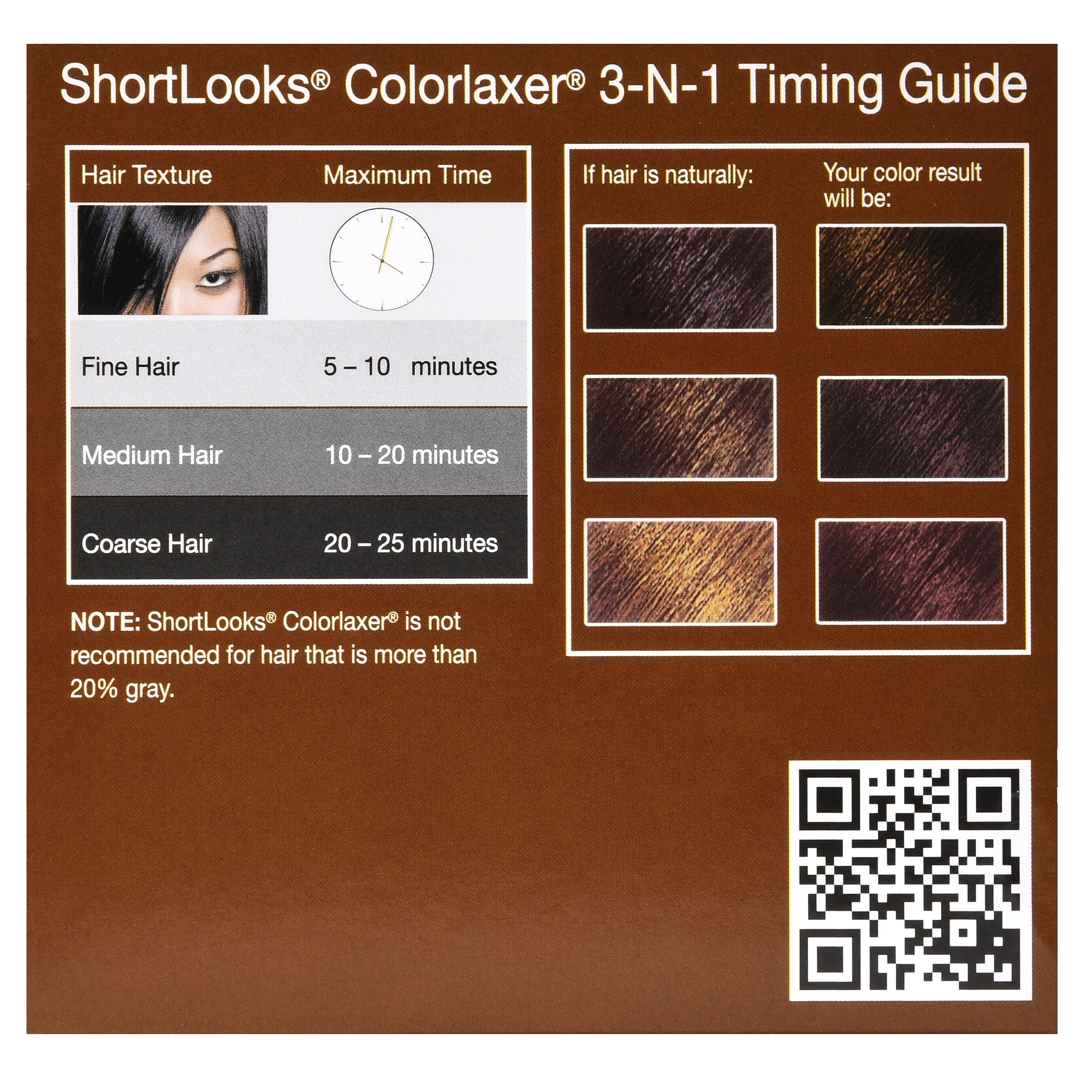 - Color, relax & condition in one easy step. For hair up to 4 inches in length. 1-Strength for all hair textures. Ammonia free. No peroxide. No scalp staining. Use ShortLooks ColorLaxer for a gentle Semi-Permanent Color, silky straight hair, and patented conditioning in a one step system. Achieve maximum straightness, fabulous color and conditioning all at the same time. Your hair feels healthy, looks healthy with beautiful shine and body. ShortLooks ColorLaxer 3-in-1System: Relaxer Creme + Conditioning Dye Serum = ShortLooks ColorLaxer. Contents: No-Mix, No-Lye Conditioning Relaxer Creme (5 oz); Sable Brown Color Serum (0.55 fl oz); Conditioning Neutralizing Shampoo (1.5 fl oz); Replenishing Conditioner (0.75 fl oz); Protective Base (0.25 fl oz).