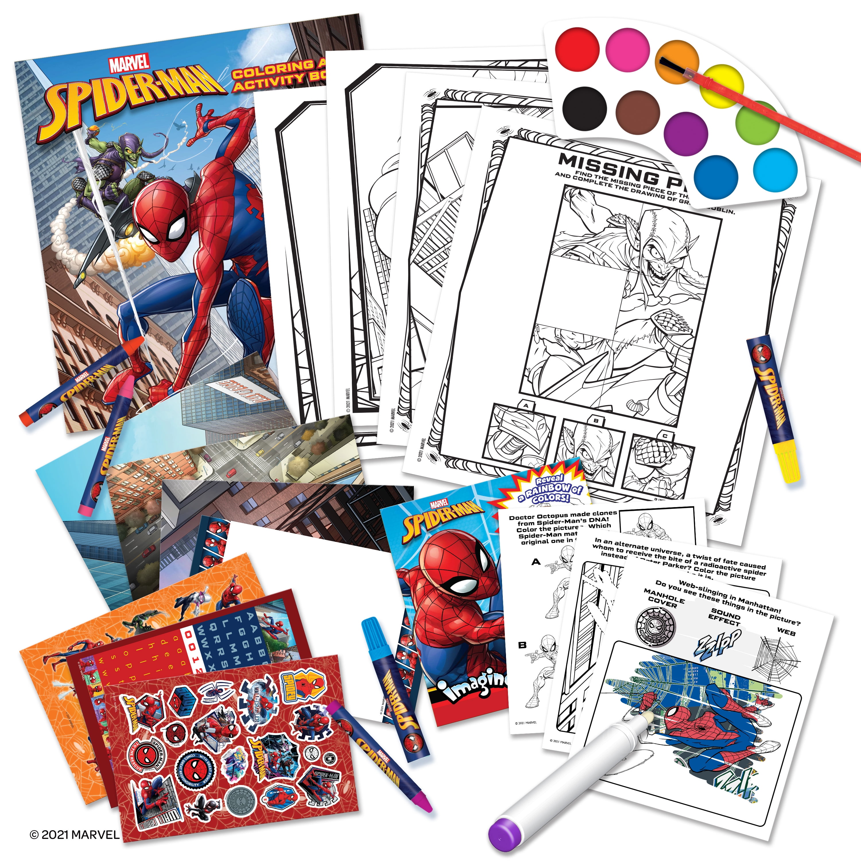 Let your little artist’s creativity run wild with Bendon’s Marvel Spider-Man World of Art & Activity Collection – now featuring fan favorite Imagine Ink! This art set comes with everything your child needs to sticker, color, draw, and paint. As an added bonus, this kit also includes an Imagine Ink Booklet with a Mess Free Marker. This patented technology magically reveals a rainbow of colors with just one Magic Ink marker that is non-toxic and invisible on most household surfaces. Measuring over 21 inches wide and 18 inches tall, this set is sure to delight! This is an official Marvel Studios licensed product and is ideal for children ages 3 years and older.