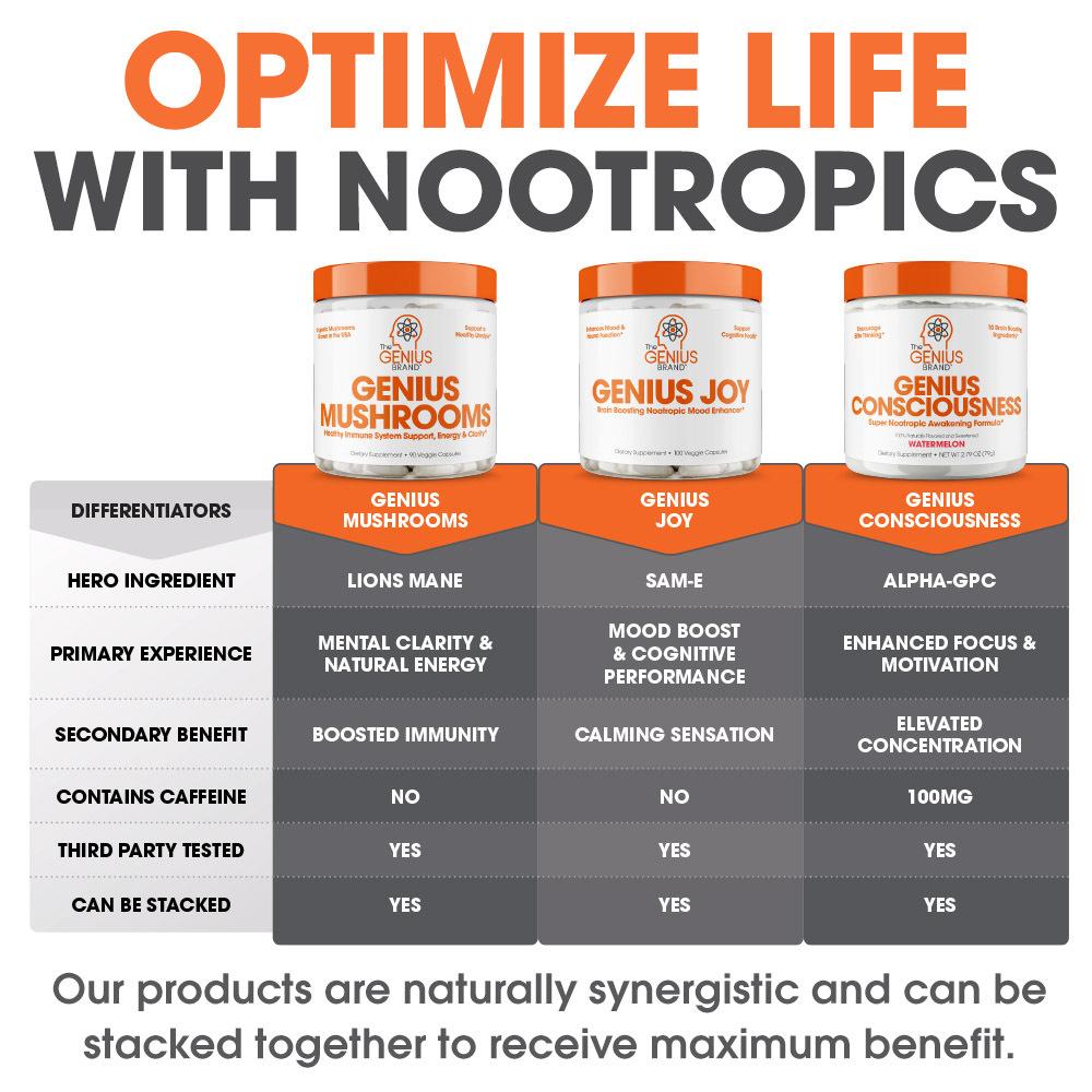 Genius Mushrooms is the nootropic supplement that fits perfectly into nearly any diet or lifestyle, containing only natural organic ingredients with no fillers, dyes, or artificial flavors. Choose personal success today and set yourself onnit the path to a healthier lifestyle. Compare with similar items: Prevagen, Force Factor Forebrain, and Nature’s Bounty. Unlock your own Genius today!