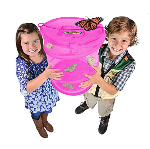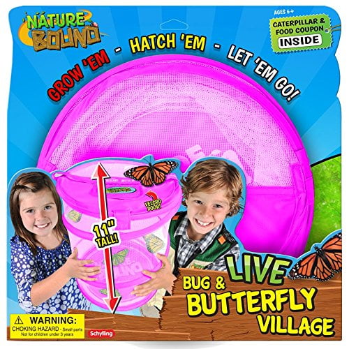 Kids learn about the lifecycle of nature while they have fun with the Bug & Butterfly Village. Watch as LIVE larvae grow and hatch into REAL butterflies. We’ve made it rugged to last year after year. A Velcro handle and lid make carrying and storage a breeze. Works with other insects as well. Plus, we include a discount coupon for 5 LIVE butterfly larvae with food to be delivered right to your door. Get up, get out, get nature bound.Waterproof and washes easily. Pop up design for easy travel. Includes mail-in voucher for five butterfly larvae and food (optional and sold separately). Perfect for flying bugs, insects and other critters. A large door to accommodate a net, a small door for little critters.