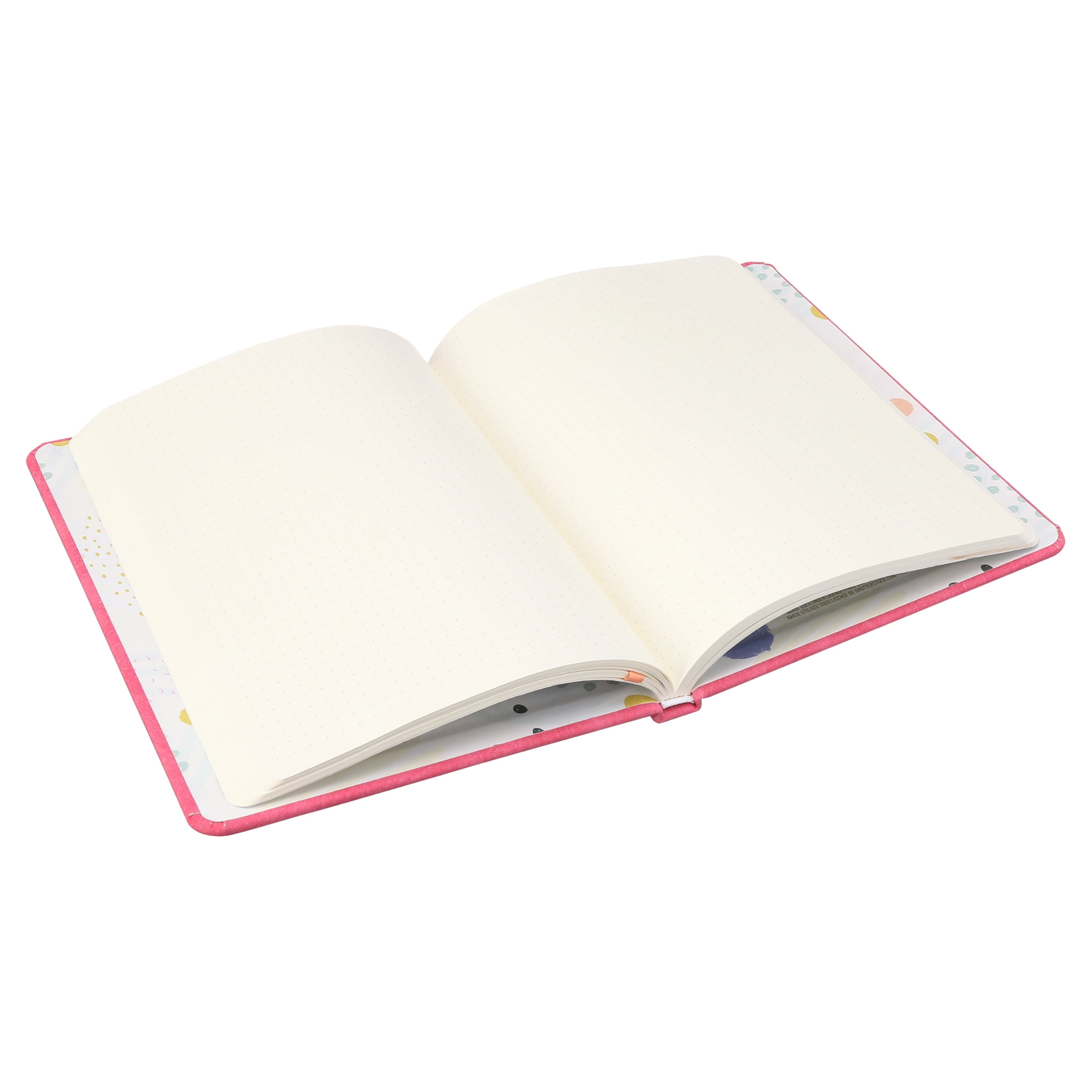 Practicality meets fun with this pink suede leatherette dotted journal. Elastic storage on the cover holds pens and your smart phone so that they are always within reach. With 192 dotted pages, it’s perfect for jotting down notes, or thoughts for your next bestseller. The Smyth sewn bound journal lays flat when open for ease in writing, and it’s just the right size for most backpacks, book bags, totes, and purses.