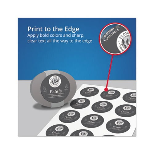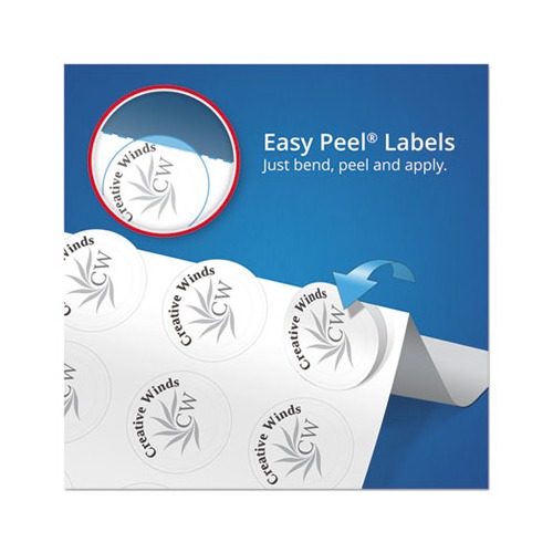Ideal for merchandising products, labeling gifts, crafts, party favors, jar labels, jam labels and more. Print-to-the-edge feature lets you add bright, bold colors and text all the way to the edge of the label. Permanent adhesive ensures that they stick and stay. Easy to customize with free designs and templates from Avery Design & Print. These premium round labels are a great way to get your products noticed. Glossy White with Sure Feed & Easy Peel. Shape: Round Label Size – text: 2" dia. Label Colors: Glossy White Color Family: White.
