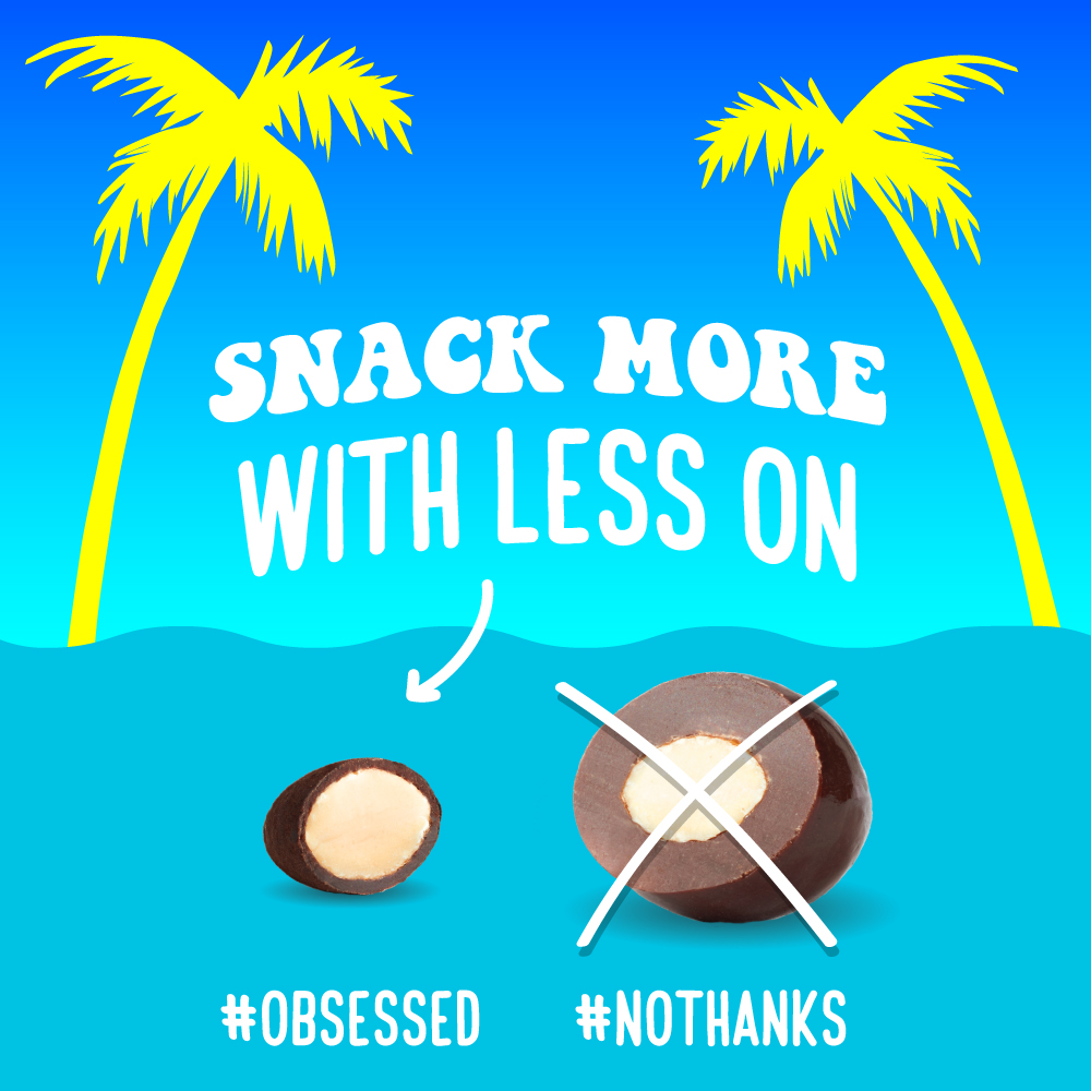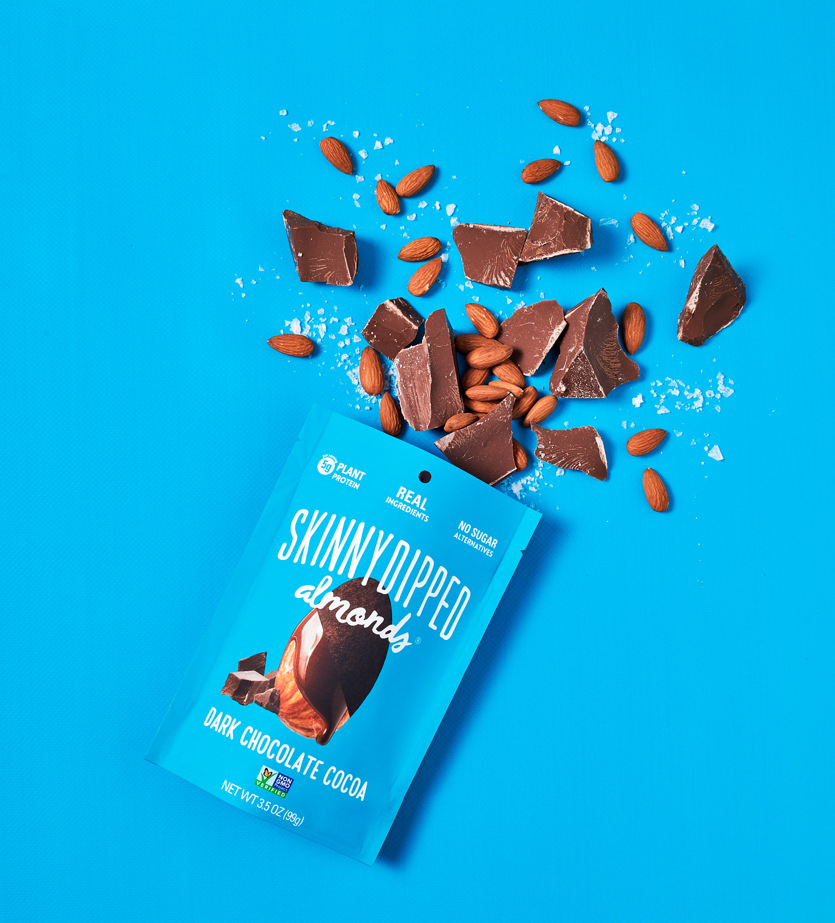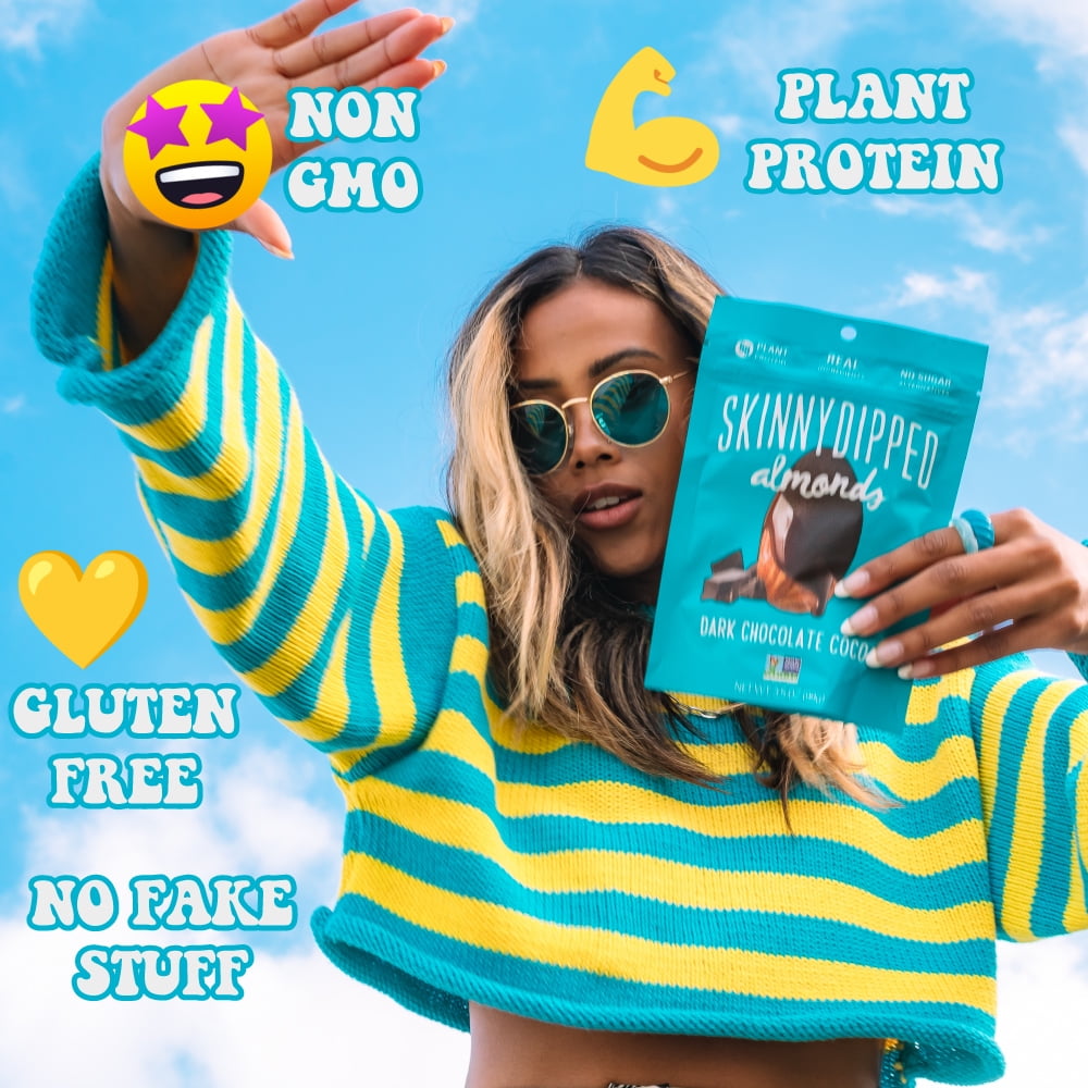 SkinnyDipped, Dark Chocolate Cocoa Almonds are the OG SkinnyDipped and your new sweet & salty obsession. Whole roasted almonds SkinnyDipped in a thin layer of dark chocolate with a kiss of maple sugar and sea salt and a dusting of cocoa. The thin chocolate layer means you get more nut than chocolate (and way less sugar) in every bite. Only 4g of sugar per serving, loaded with plant protein and made without any artificial ingredients and with almonds sourced from certified bee-friendly farms. We don’t sugar coat – we SkinnyDip.