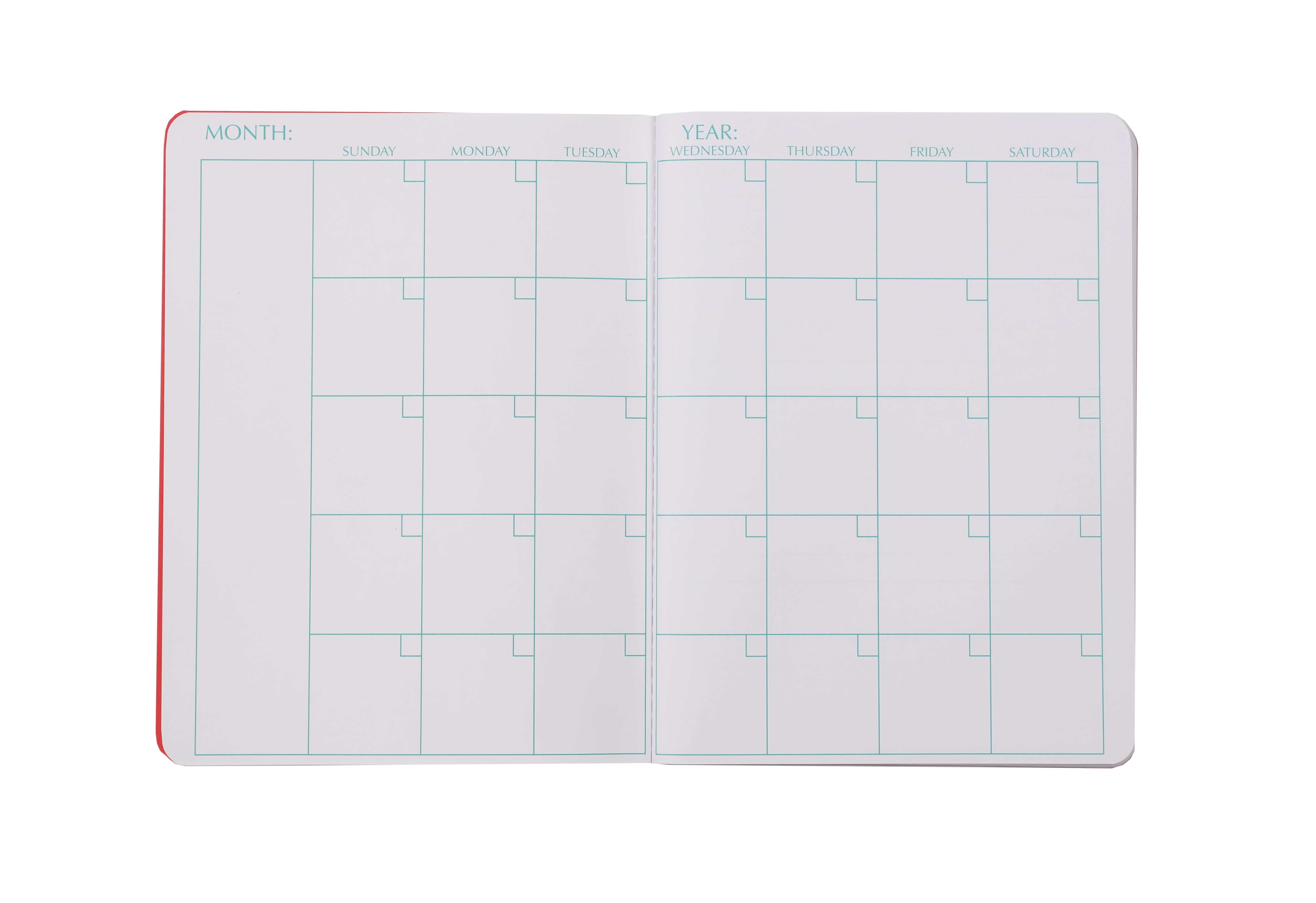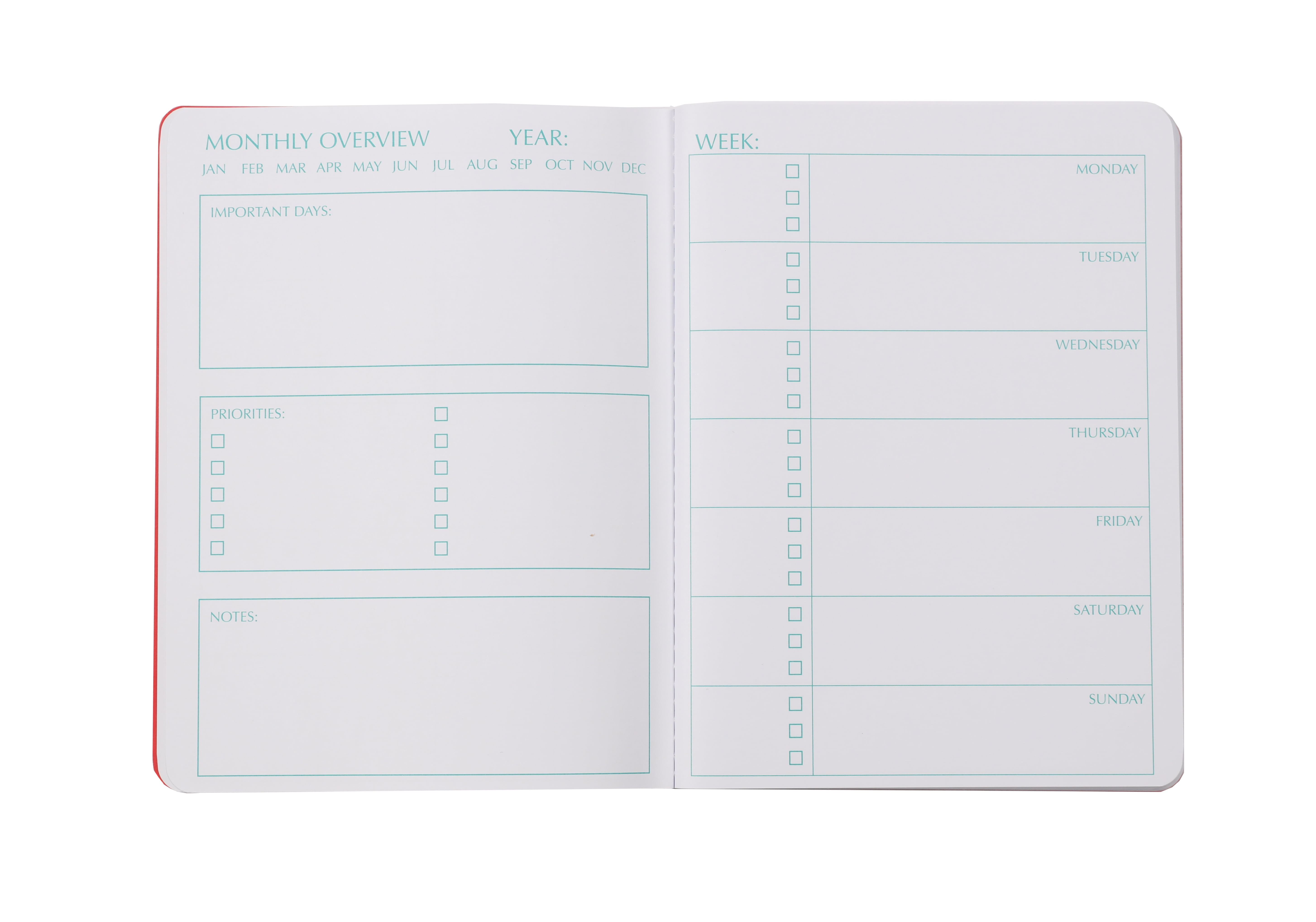 - 3-piece set includes one 12-month undated planner (6" W x 8" L/15.2 cm x 20.3 cm), one 60-sheet notebook (6" W x 8" L /15.2 cm x 20.3 cm), and one gold ballpoint pen