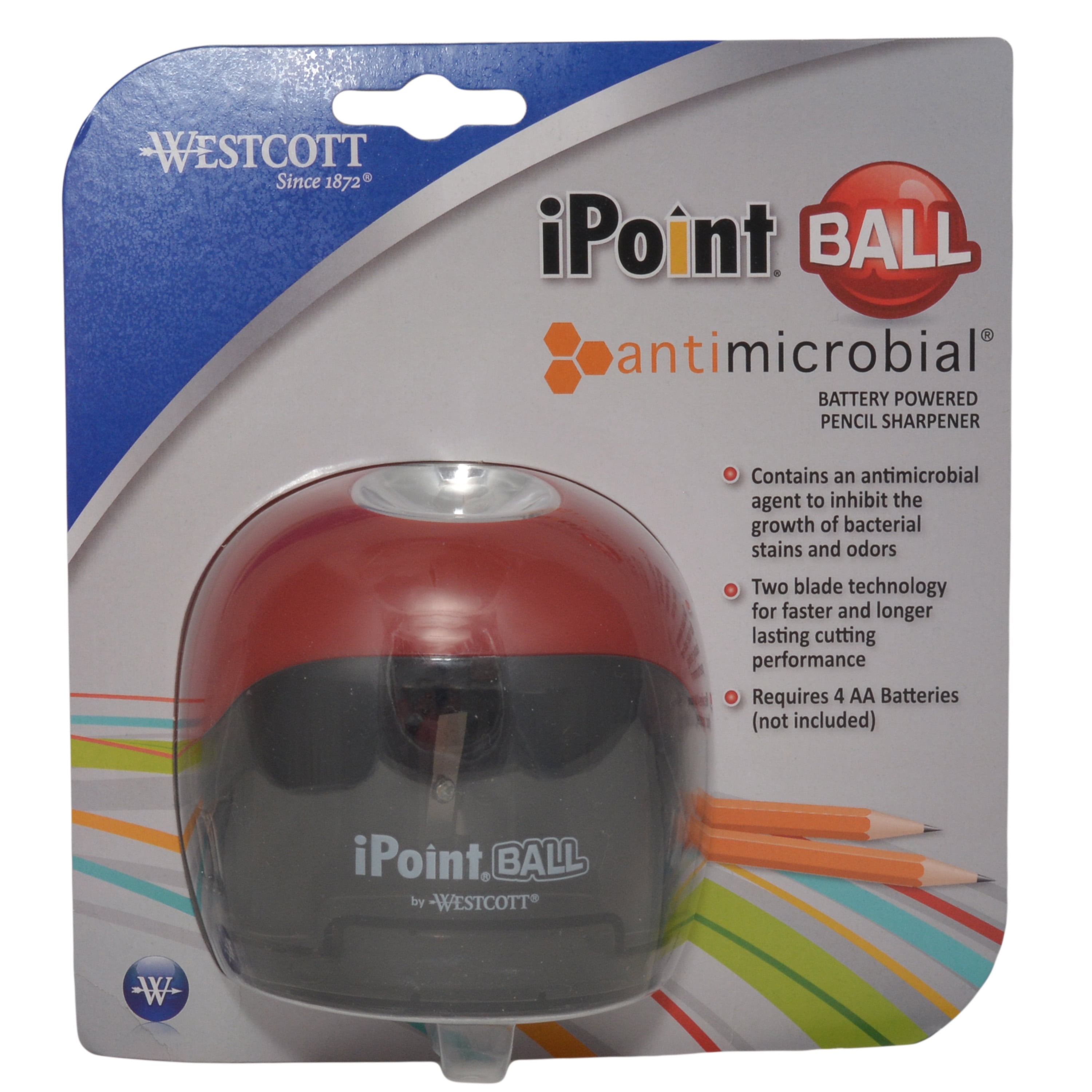 Westcott Ipoint Ball Battery Pencil Sharpener, Anti-Microbial: