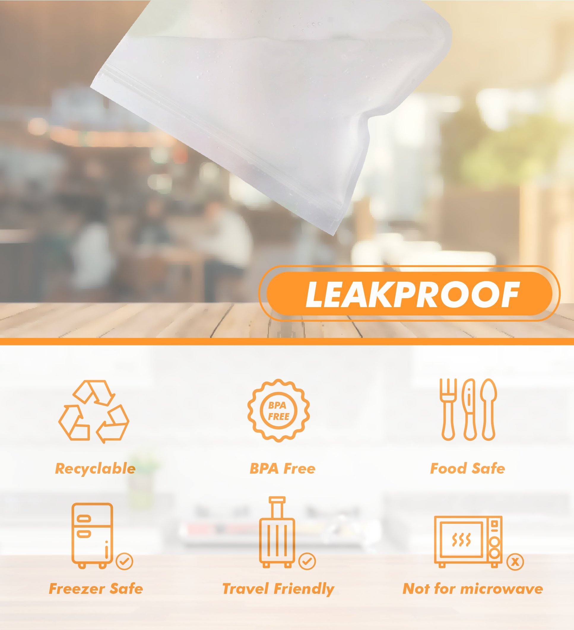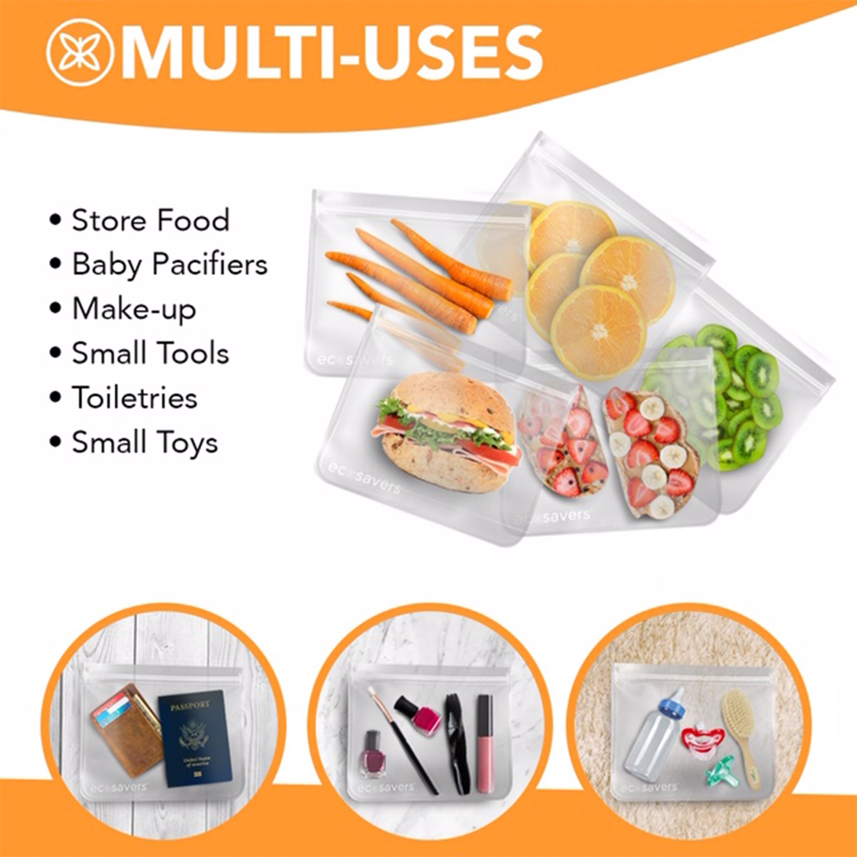 Premium Quality: Food-grade eco-friendly PEVA material. Free from BPA, Silicone, Lead, Chloride, and PVC. One reusable bag can replace 500 single-use plastic sandwich bags. Clear, no toxic dyes. Freezer safe. Reduces food spoilage and environmental waste.