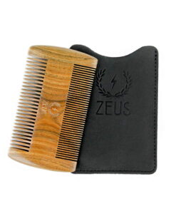 zeus organic sandalwood double-sided beard comb with leather sheath!