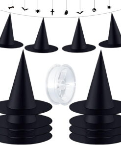 ZeeDix 8 Pcs 15 Inch Black Witch Hat with 98 Feet Hanging Rope Halloween Hanging Decorations Witch Costume Accessory for Halloween Party Decoration