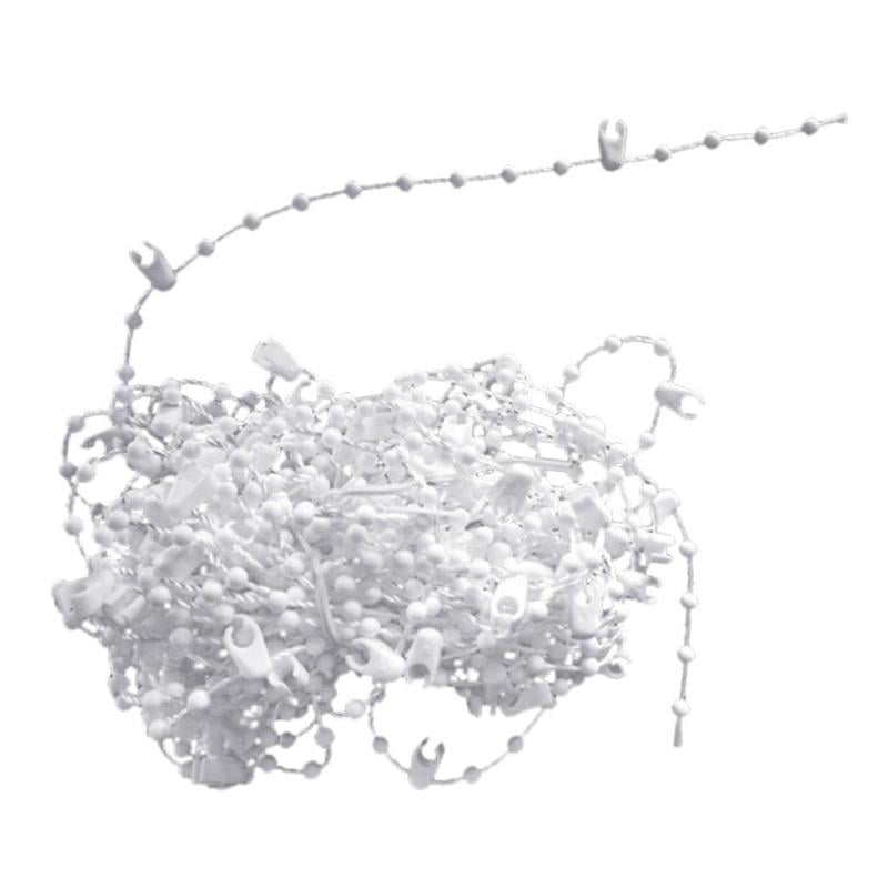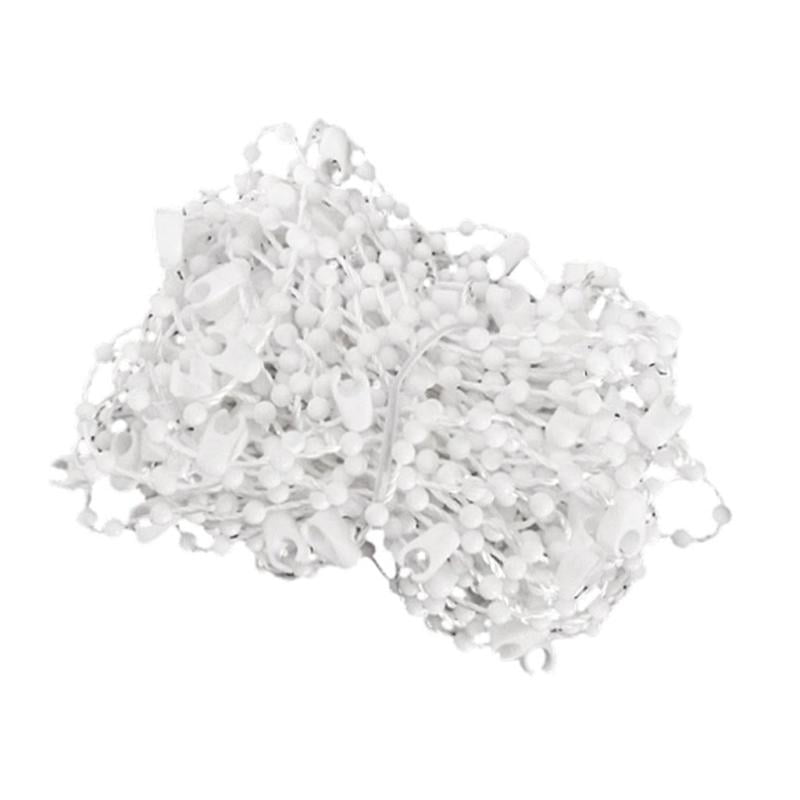 Our vertical blind bottom chain suitable for 89mm slats and louvres. 8 beads (dia. 27mm/1.06") in between each clip, 10 meters bottom chain has approx. 112 links clips.