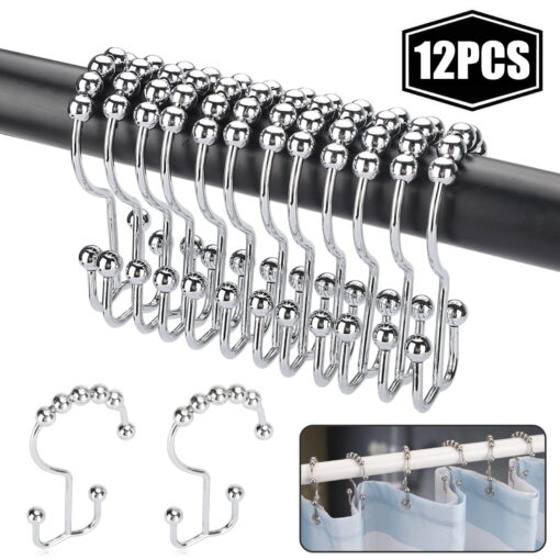 12pcs Shower Curtain Hooks, EEEkit Shower Curtain Rings, Stainless Steel Roller Rust-Resistant Balance Sliding Anti-Drop Double Shower Hooks for Curtain Bathroom Shower Curtains, Silver