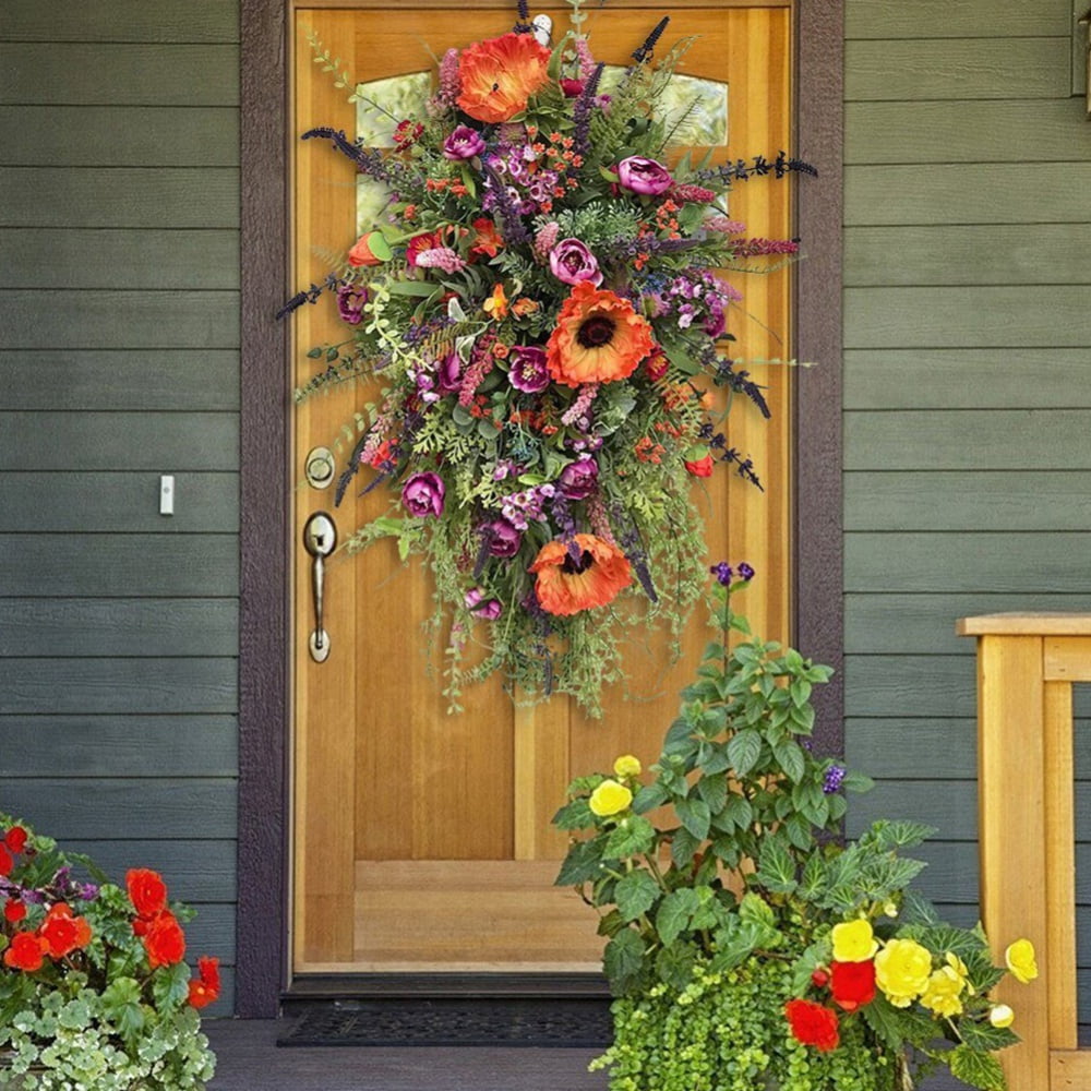 16inch Spring Summer Front Door OkraTeardrop Wreath Artificial Floral Swag Wreath for Home Dcor