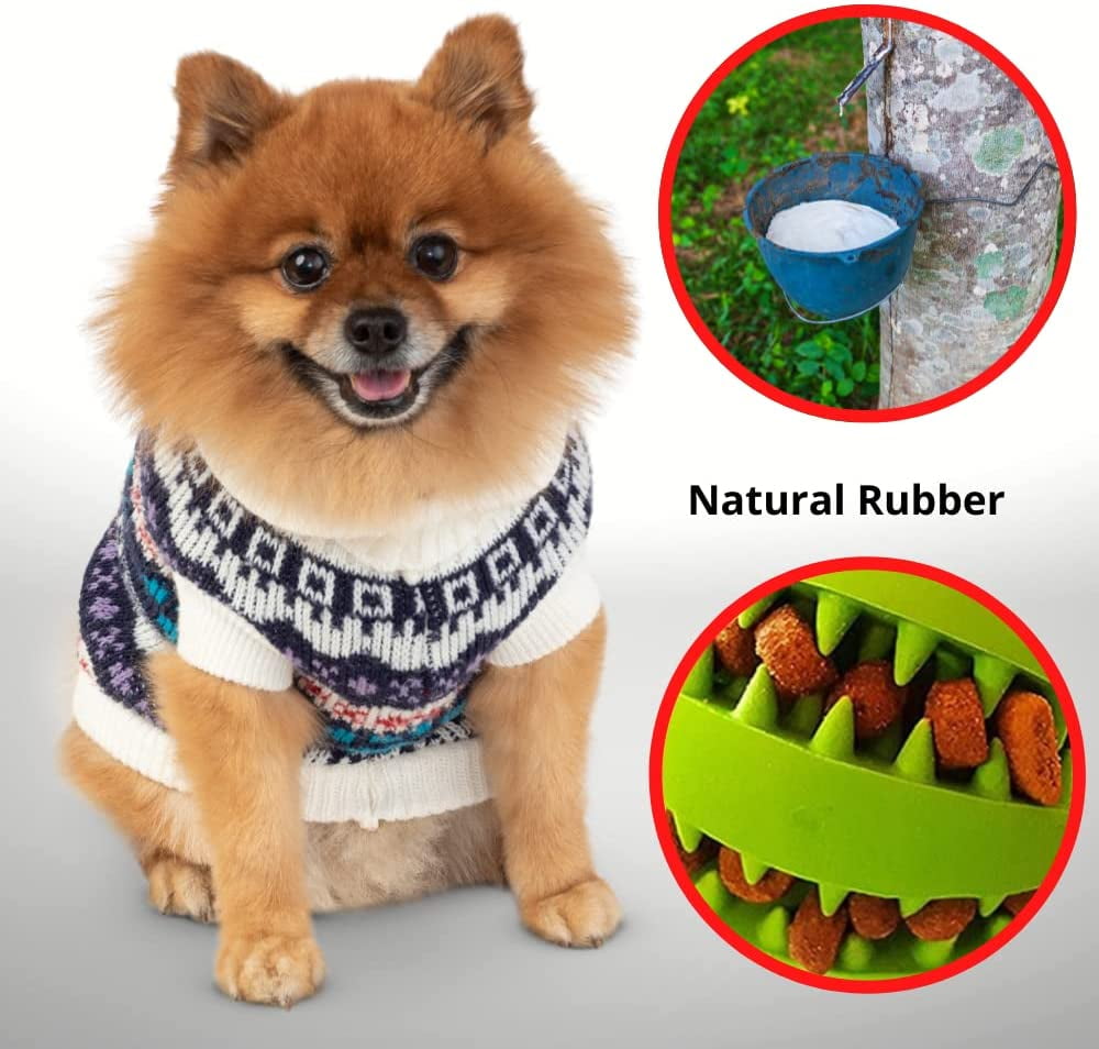 "Features: Size: 1.9” Basic dog treat toys ball can accompany your dog made from natural rubber bite-resistant and non-toxic,safe for your pets. The sawtooth antiskid surface design, fit the tooth shape of dog, effectively help to clean your dog’s teeth perfect for interaction with your dog, promote bond between you and your dog and improve your dog’s intelligence.