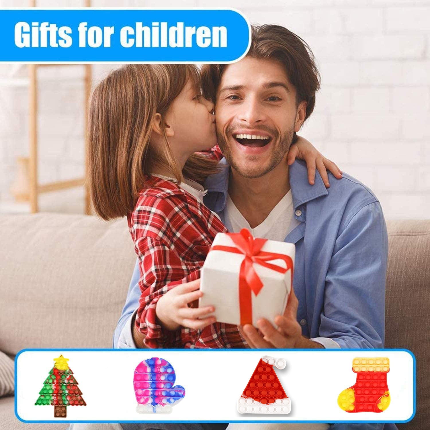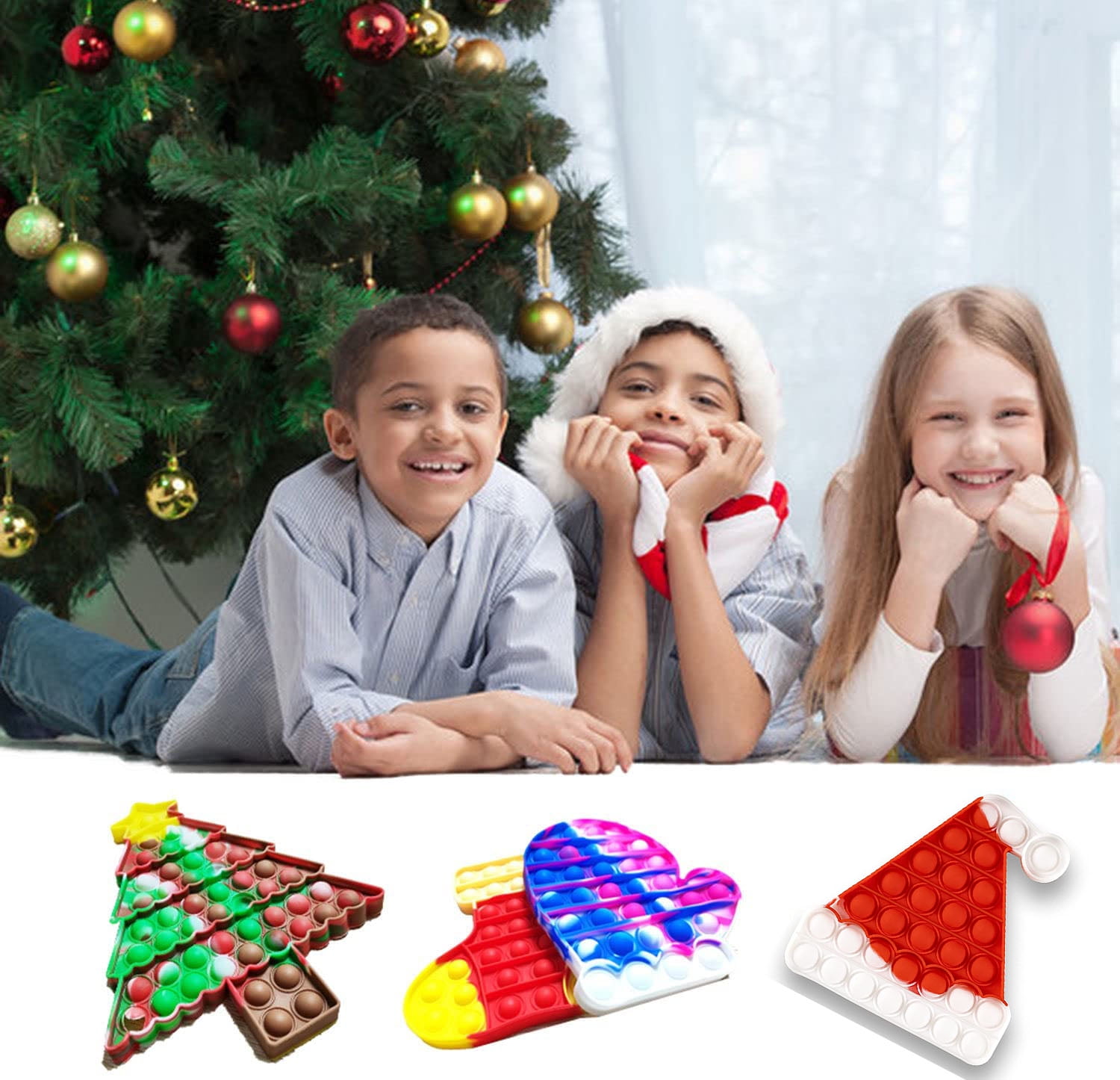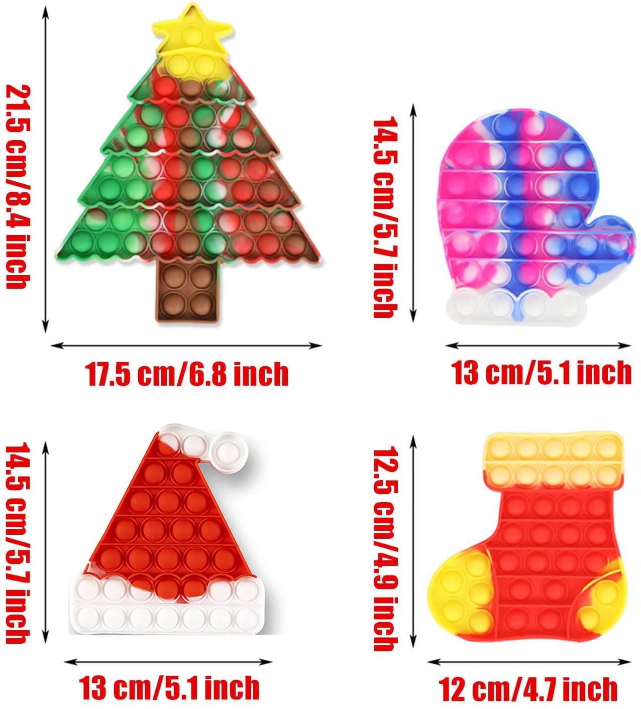 4 Pack Christmas Pop Fidget Toys for Kids Girls Boys Adults Christmas Tree/Hat/Stocking/Glove Bubble Pop Decoration Christmas Party Favors Stocking Stuffers Gifts Sensory Stress Relief Poppers