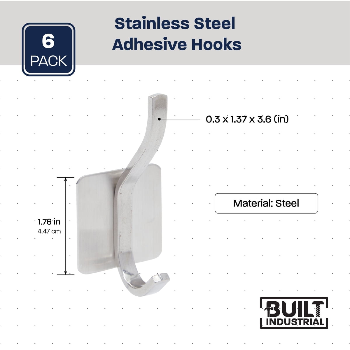 - What’s Included: Includes 6 self adhesive stainless steel hooks