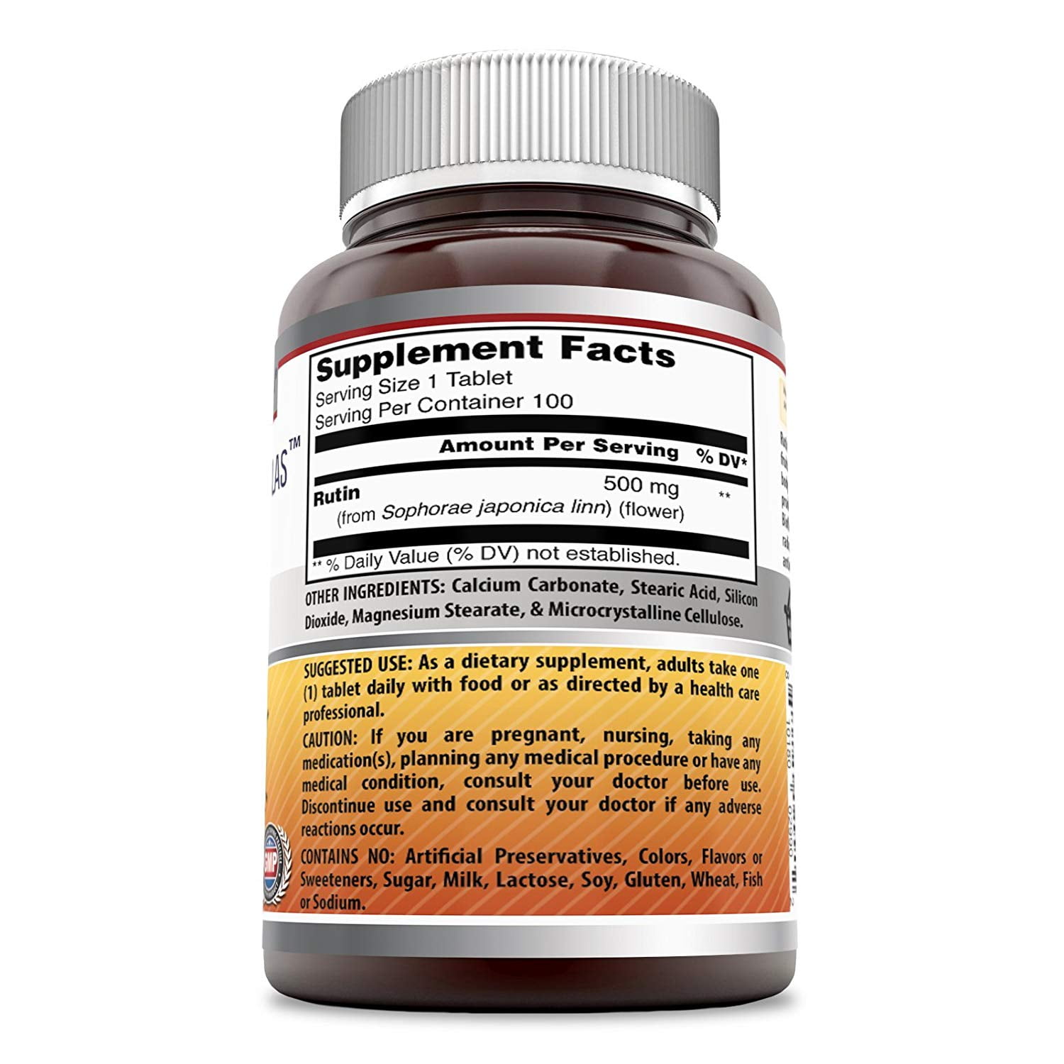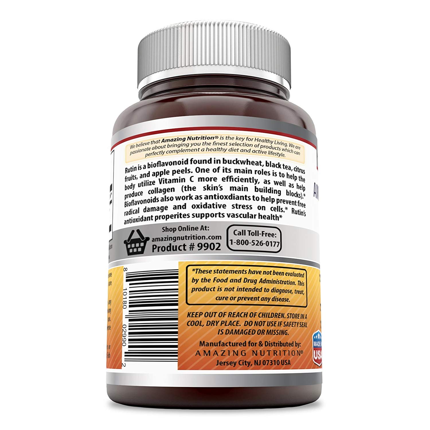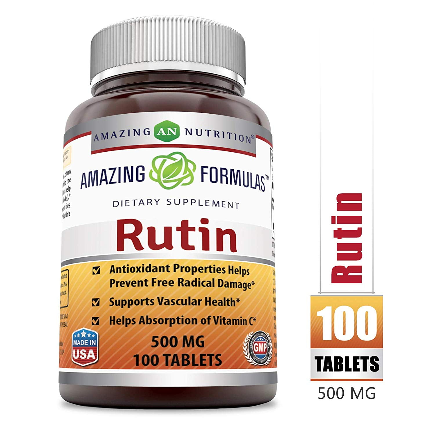 Amazing Formulas Rutin 500 Mg 100 Tablets Give your bodythe antioxidants it needs with this Amazing Formulas Rutin NaturalBioflavonoid Supplement. Our supplement features 500 milligrams of rutin ineach one of its 100 tablets. Rutin may help your body produce collagen and usevitamin C more effectively promoting immune health, healthy ageing andcirculation. Rutin may serve as an excellent vascular health supplements, asit may be able to strengthen your veins and arteries. BENEFITS OF AMAZINGFORMULAS RUTIN NATURAL BIOFLAVONOID SUPPLEMENT SUPPORTS OVERALL HEALTH ANDWELLBEING The natural compounds found in this Rutin are essential inmaintaining a healthy circulatory system, fighting inflammation, and forsupporting immune system. ANTIOXIDANT POWERHOUSE Rutin may help staving offthe damage that free radicals can pose to the body, helping to reducepremature signs of aging and wrinkles on the skin. PROMOTES VASCULAR HEALTHThe Amazing Formulas Rutin may provide benefits for your vascular system. Itposes the ability to strengthen important aspects of body such as veins,arteries and capillarie We believe that balanced Nutrition is the key forHealthy Living. We are passionate about bringing you the finest selection ofproducts which can perfectly complement a healthy diet and active lifestyle.We are constantly expanding our line-up of formulas to be a one-stop shop forall your health and wellness needs. OUR MISSION & VALUES We believe nothing ismore important than your health. Our goal is to get you living well andfeeling better and we want to make it easy! We understand that getting all thenutrients you need on a daily basis can be a difficult task. It can seemdaunting to incorporate the recommended amount of fruits and vegetables, high-fiber, whole grains, healthy fats and lean protein into your busy day. AmazingNutrition has all the best vitamins to help you get all right nutrients daily.OUR COMMITMENT We only use ingredients from suppliers that meet our stringentstandards. Additionally, every single product is subjected to countlessquality tests to ensure purity and full potency. All our products are made inUSA at a GMP facility.
