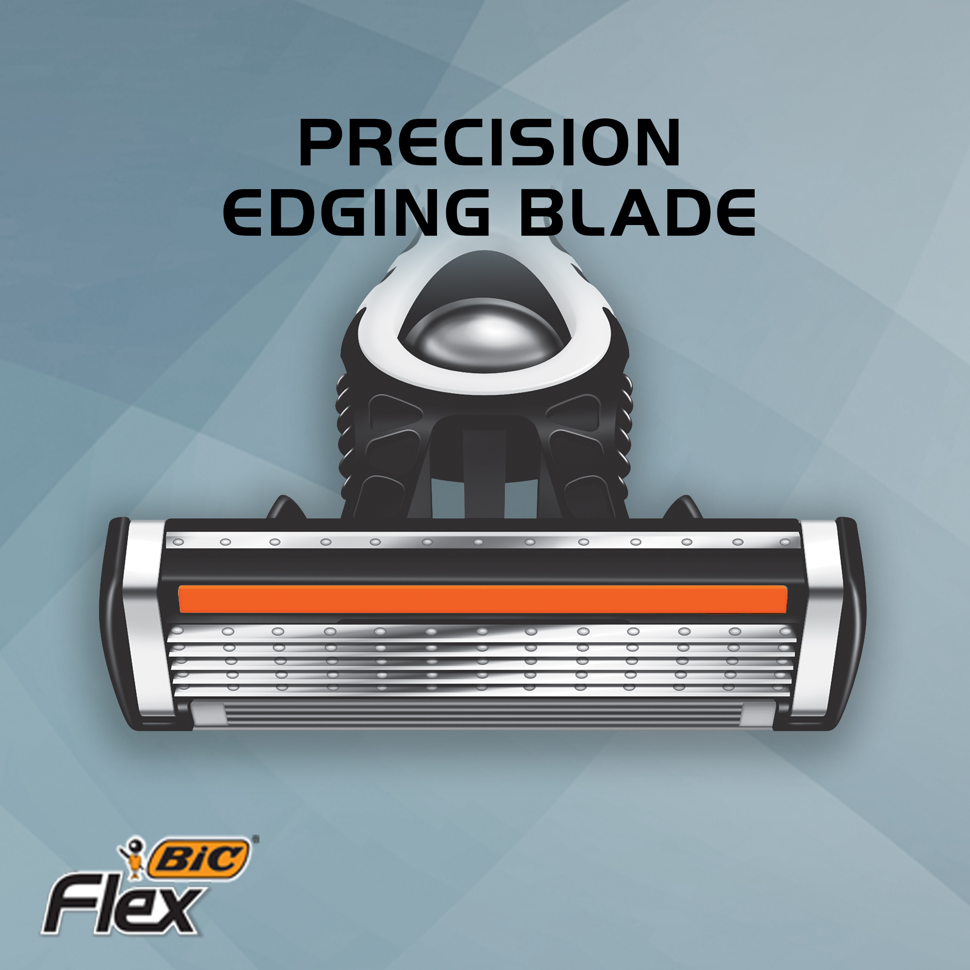 The BIC flex 5 men’s disposable razor features five longer-lasting, flexible blades that individually adjust to the contours of your skin. The razor head pivots 40 degrees and added weight in the handle from the balancing sphere enhances control while you shave. The ergonomic, anti-slip grip helps you shave with confidence, while the lubricating strip enriched with aloe helps the razor glide along your skin. The razor also includes a precision edging blade to help you neatly shave tricky spots like under your nose or sideburns. For convenience, this razor gift pack includes 8 disposable razors – a great value.