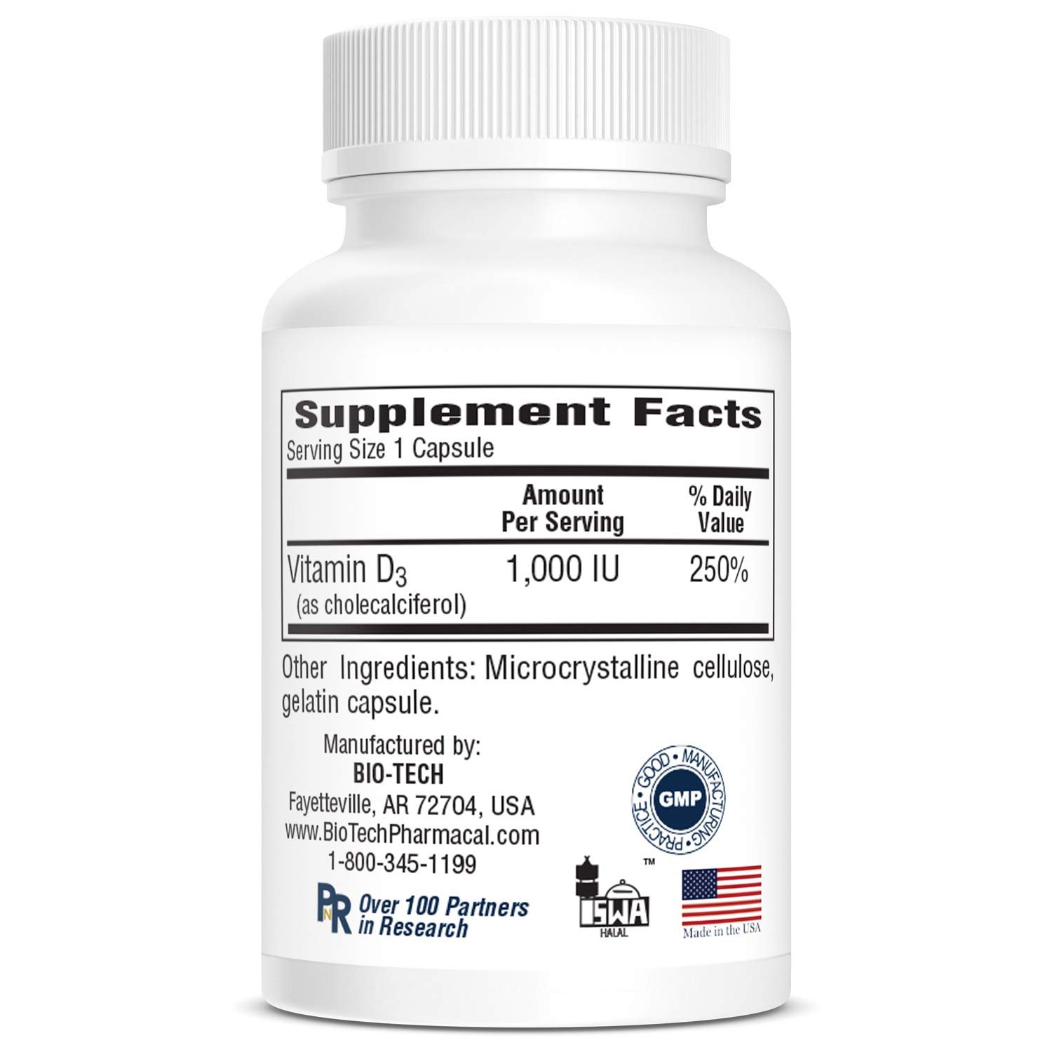 BioTech Pharmacal D3 – 1,000 IU – 100 Capsules