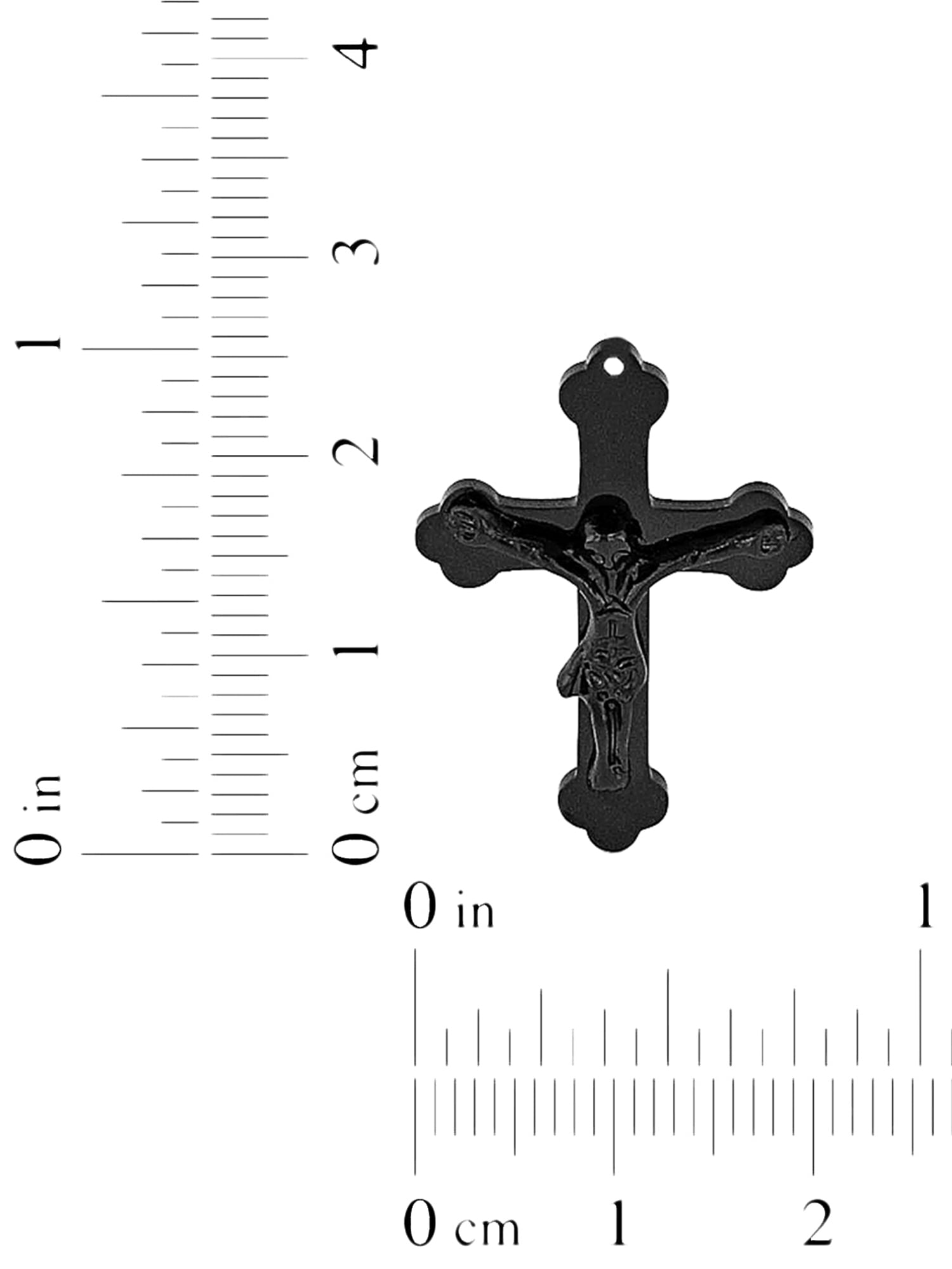 Black Stainless Steel Beaded Rosary Necklace with Crucifix and Madonna Centerpiece