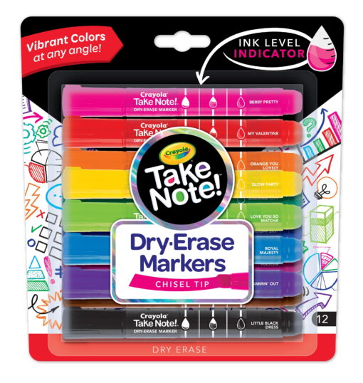 Crayola Take Note Dry Erase Markers, Various Colors, Office & School Supplies, 12 Count