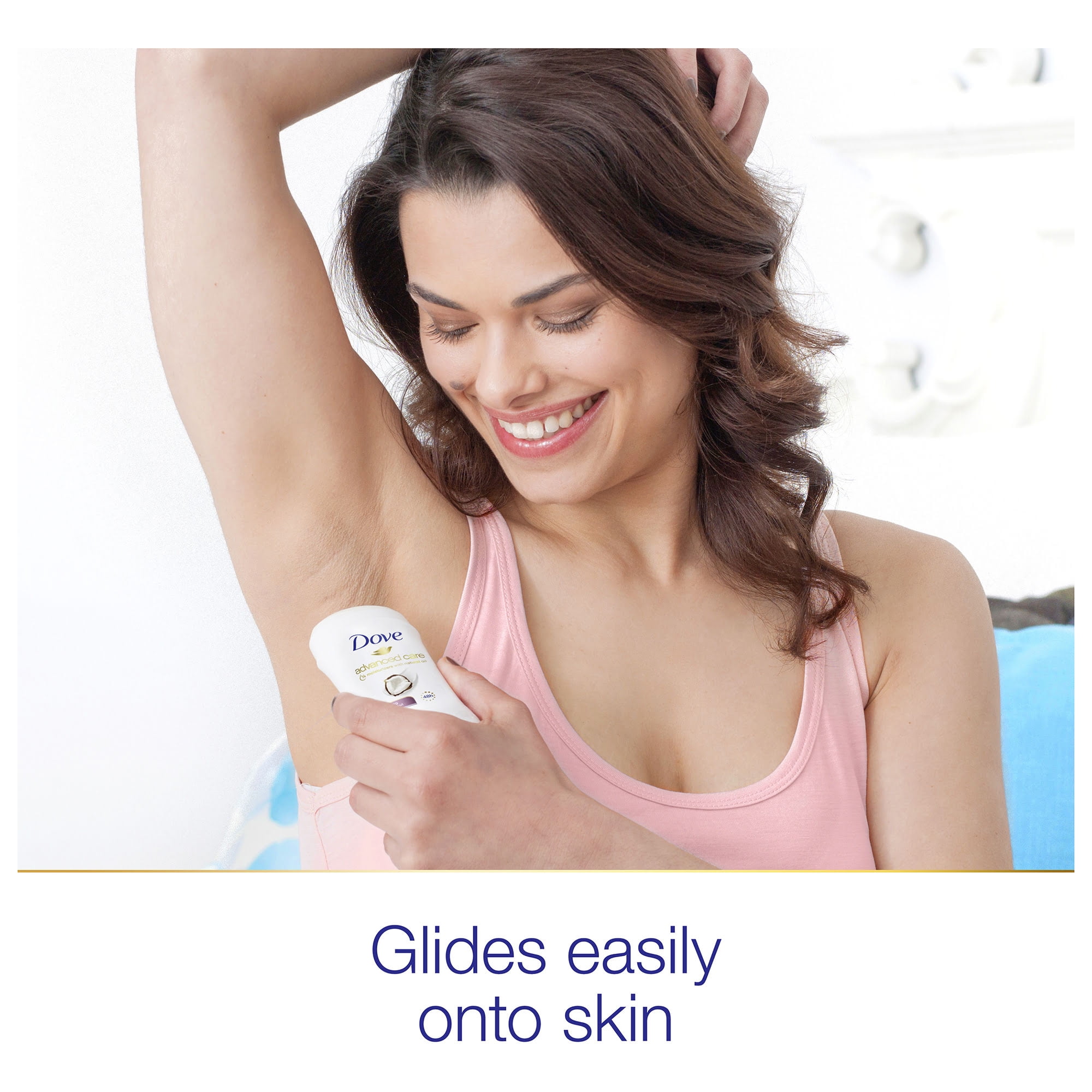 Have you been wondering how to get soft and comfortable underarms? Try Dove Advanced Care Caring Coconut Antiperspirant Deodorant Stick. This pampering antiperspirant stick infused with a creamy coconut scent leaves your underarms feeling healthy and protected. Our alcohol-free formula, enriched with our signature 1/4 moisturizers with natural oil, is kind on delicate underarm skin and helps it recover from the irritation that regular shaving can cause. After a few uses, youll notice that your underarm skin feels soft and comfortable. As much as it cares for your skin, this Dove deodorant for women with antiperspirant doesnt compromise on antiperspirant protection. It will keep you dry and fresh all day with up to 48 hours of protection against sweat and odor. For best results, apply this Dove antiperspirant deodorant to dry skin after showering and enjoy fresh, comfortably dry skin from morning to night. Dove is certified cruelty-free by PETA because we believe that real beauty is cruelty-free. Were on a mission to help women raise their self-esteem because we believe beauty should be a source of confidence, not anxiety. Dove Antiperspirant Deodorants deliver effective underarm protection and are kind to skin, so women can be free of underarm inhibitions and live beautifully unselfconsciously.