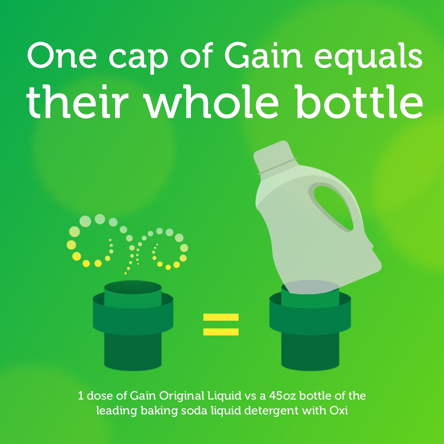 Gain Original Liquid Laundry Detergent infuses your clothes with the fragrance of the green, clean, airy outdoors, so you’re always just one quick sniff away from the most invigorating scent experience known to humankind. Equipped with the cleaning power of Oxi Boost, and the odor-removal properties of Febreze, Gain Liquid Laundry Detergent provides you with excellent results wash after wash! Get rid of set-in odors and two-weeks old stains with the power of Oxi Boost, composed of highly effective pre-treaters, surfactants, and enzymes. Packing 50% more scent compared to regular Gain powder detergent, you can now revel in the ahhhmazing scent of Gain Liquid Laundry Detergent for up to six weeks from wash.