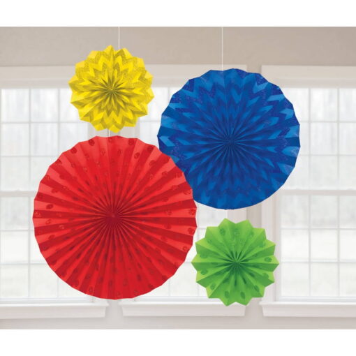 Glitter Paper Fans Rainbow, Set of 4