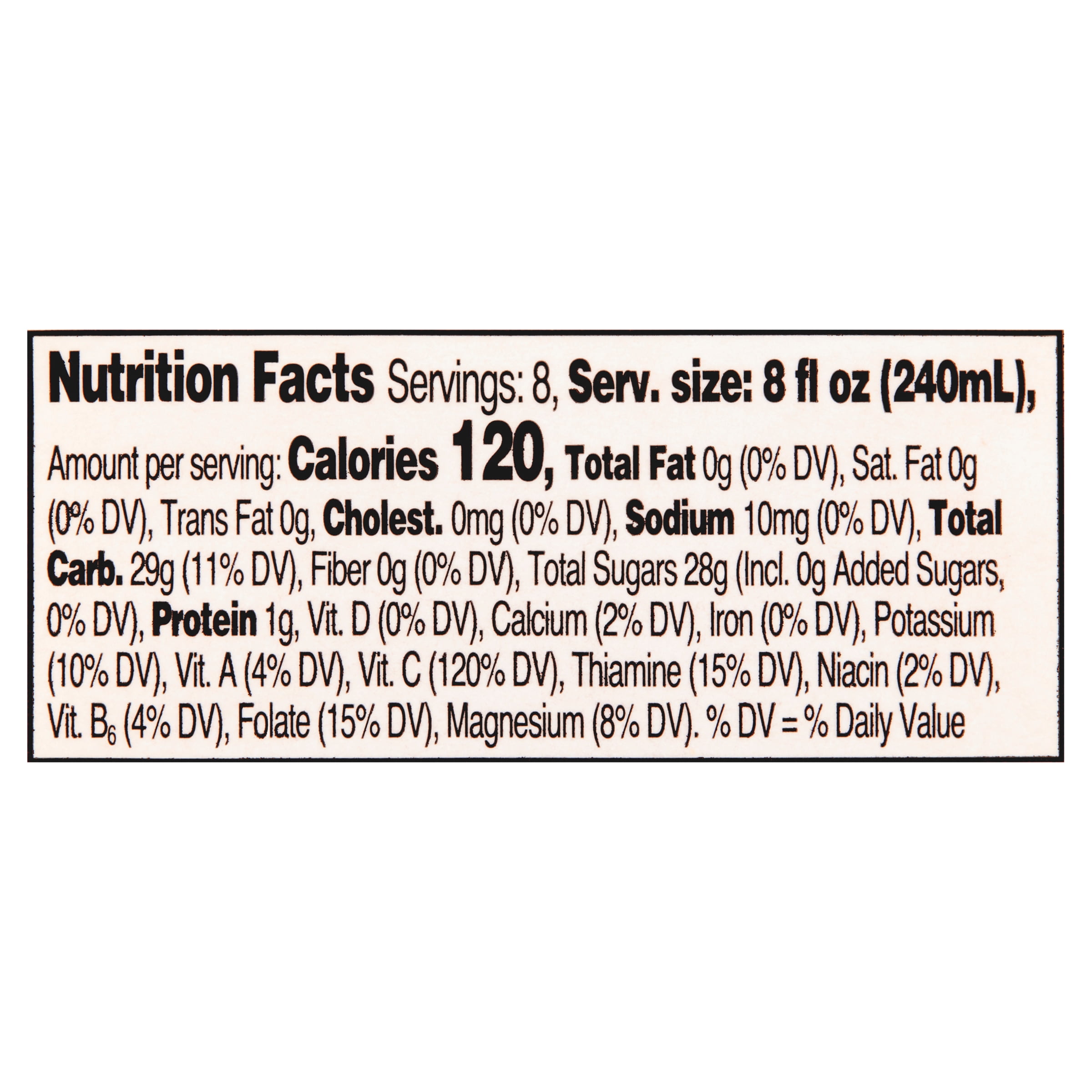 Start your day off right with a glass of Great Value Original 100% Orange Juice. Enjoy the refreshing taste of fresh oranges while refueling your body with nutritious vitamin A, vitamin C, and other healthy nutrients like calcium and magnesium. Rest assured this juice is 100% pure and pasteurized, so you can enjoy every sip, every time you’re craving some OJ. Great Value Original 100% Orange Juice has only 120 calories per serving, is made with natural ingredients, and contains no high fructose corn syrup, making it an excellent beverage of choice for the health-conscious consumer. This juice combines excellent taste and quality ingredients in a convenient 2-quart jug so you can enjoy an incredible value at a great price. Treat yourself to the great taste of Great Value Original 100% Orange Juice.