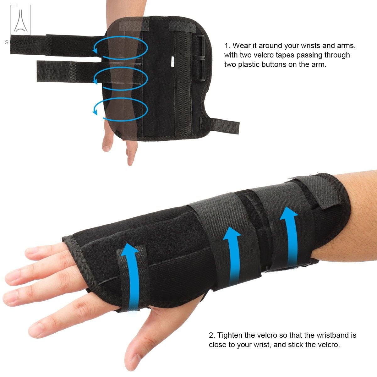 Gustavedesign 2pc Breathable Wrist Brace Support Carpal Tunnel Splint Sprain Forearm Band Straps Adjustable Hand Support for Injuries, Wrist Pain, Sprain, Sport (Left+Right)