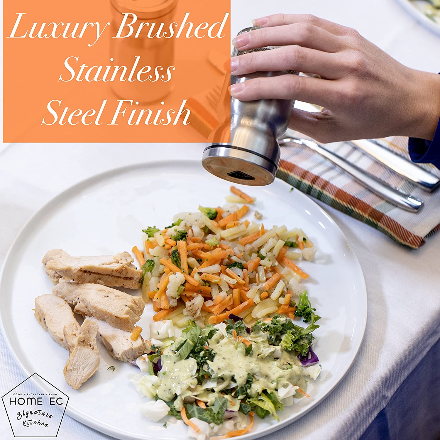 Salt and pepper shaker set by Home EC, includes a collapsible silicone funnel. These salt shakers and pepper shakers will enhance your dinner party and any recipe you decide to cook. Don’t wait add to cart now.