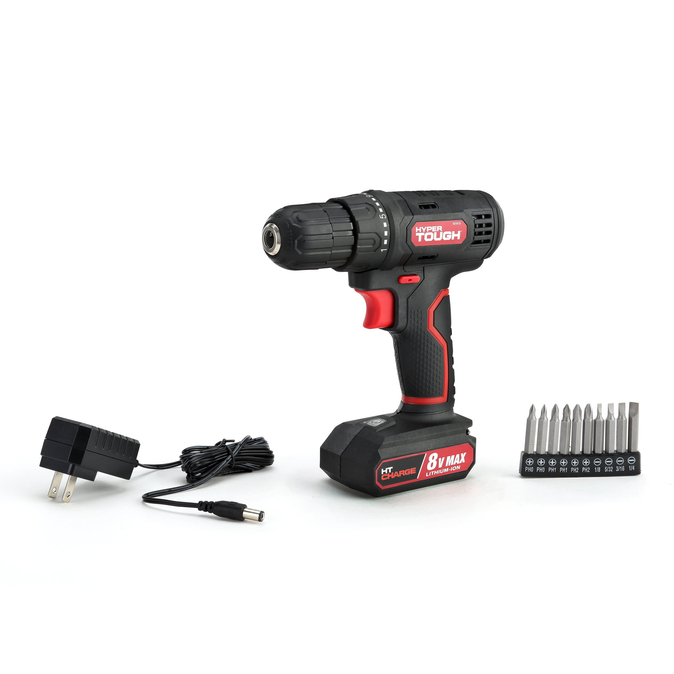 Hyper Tough 8V Max Cordless Drill, 3/8 inch Chuck, Non-removable 1.5Ah Battery with Charger, Bit Holder & LED Light