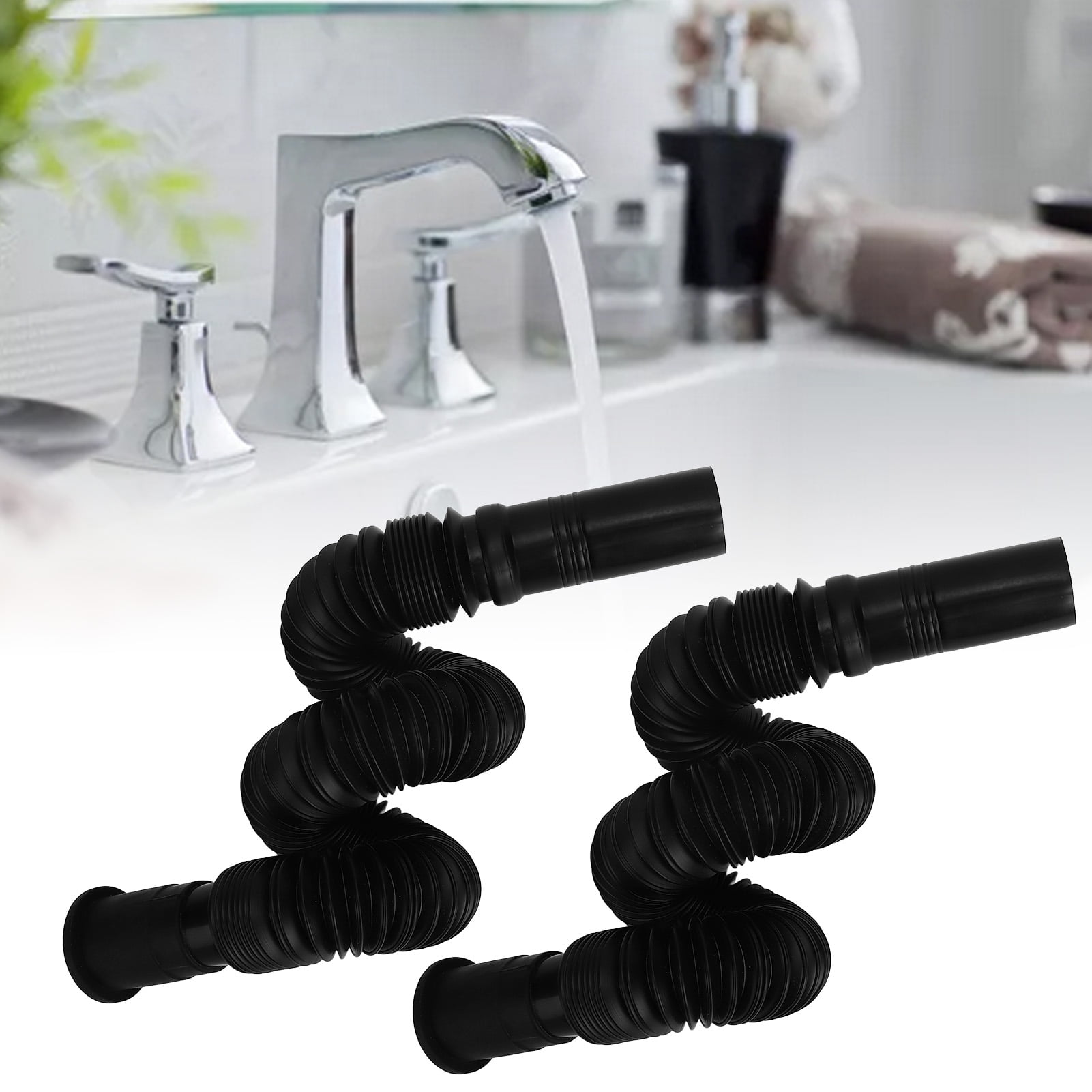 LHCER 2Pcs Basin Drain Pipe Wash Basin Sink Drain Hose Flexible PVC Water Pipe for Kitchen Bathroom Black, Wash Basin Drain Pipe