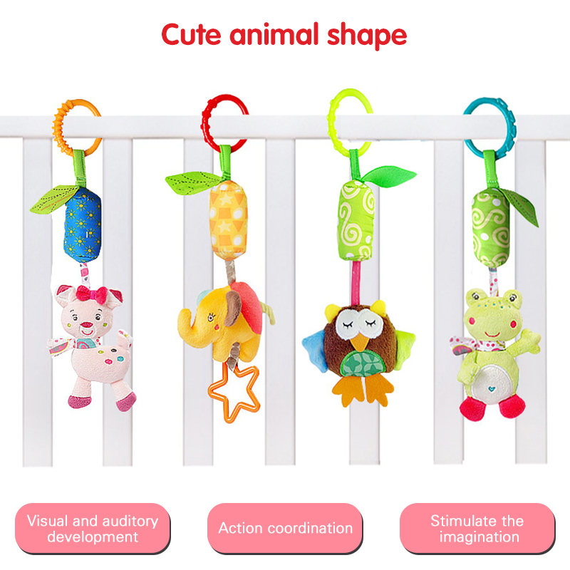 LNKOO 4 Pack Animal Hanging Rattle Toys, Baby Bed Crib Car Seat Travel Stroller Soft Plush Crinkle Toys for Infant, Newborn Birthday Gifts for 0, 3, 6, 9, 12 Months