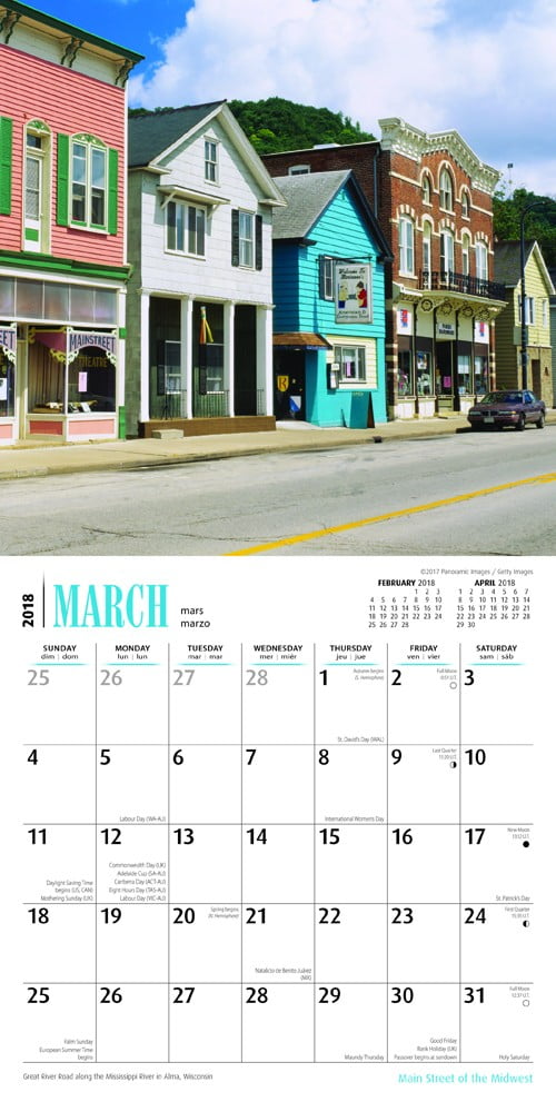 Main streets of small towns are part of the iconography of American life. Lined with charming shops and eateries, main streets hearken back to a simpler time. Feel the stress of city life fall away with the 13 images in this lovely mini calendar.Main Street of the Midwest 2018 Calendar