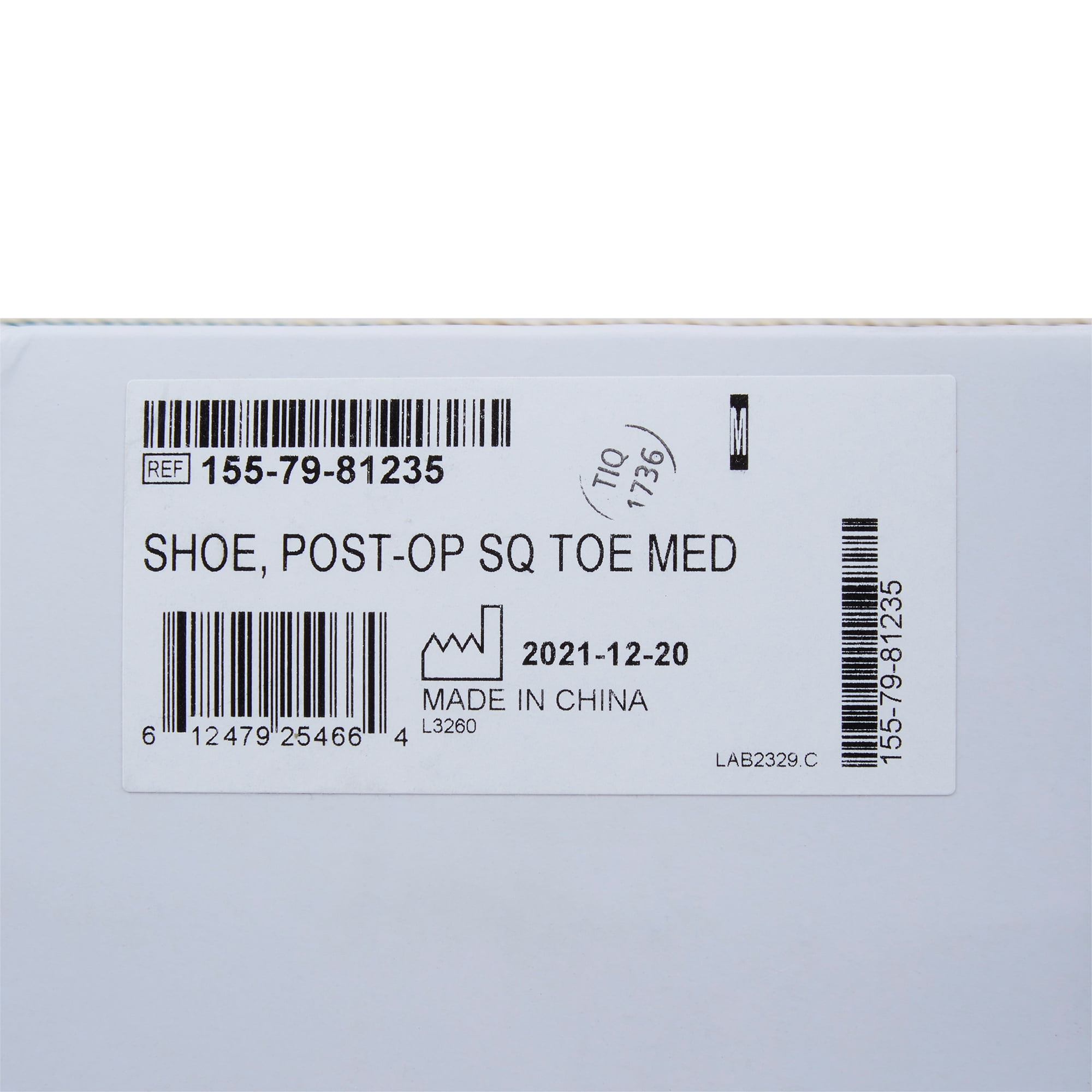 The McKesson Square Toe Post-Op Shoe provides a comfortable and protective cover after an operation or other foot trauma. The cast shoe provides support to the foot, while still being roomy and spacious enough for any dressings that may also be needed. This is possible with the hook and loop closure that is adjustable according to the needs of the user. The shoe is rigid along the bottom with a square toe. The square toe allows it to act as a bumper of sorts to protect the foot and toes from accidental collisions with objects that would prolong healing.