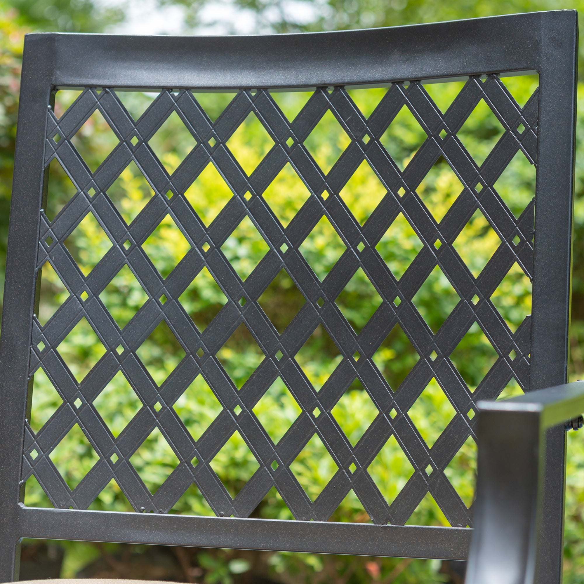 - High Quality: The outdoor dining set is made of a high-quality steel frame with excellent E-coating and powder coated finish which is all-weather, UV & rust-resistant, standing up to outdoor elements for reliable long-lasting strength.