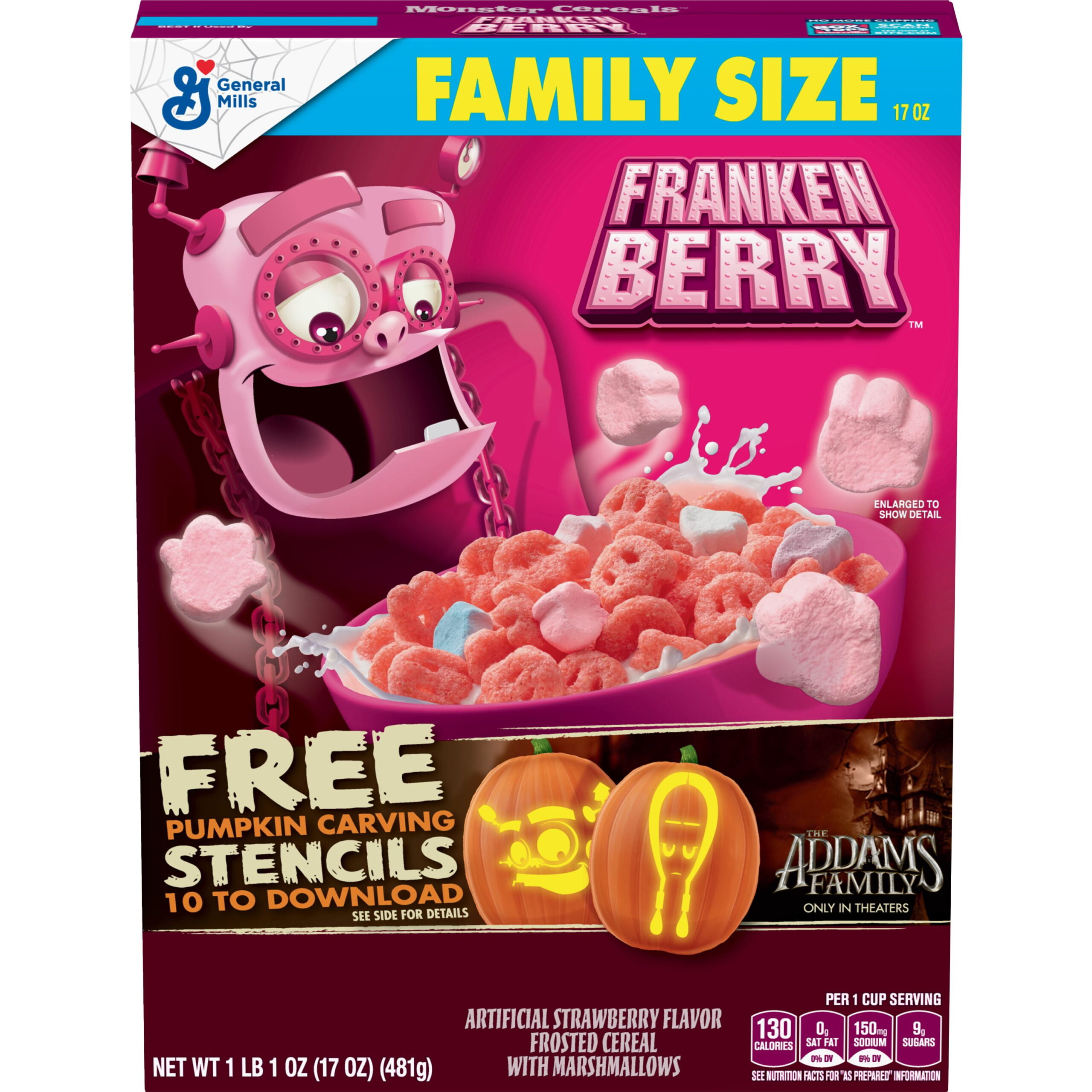 Monsters, General Mills, Breakfast Cereal, Franken Berry, Halloween, Strawberry Flavor, with Marshmallows, 17 oz