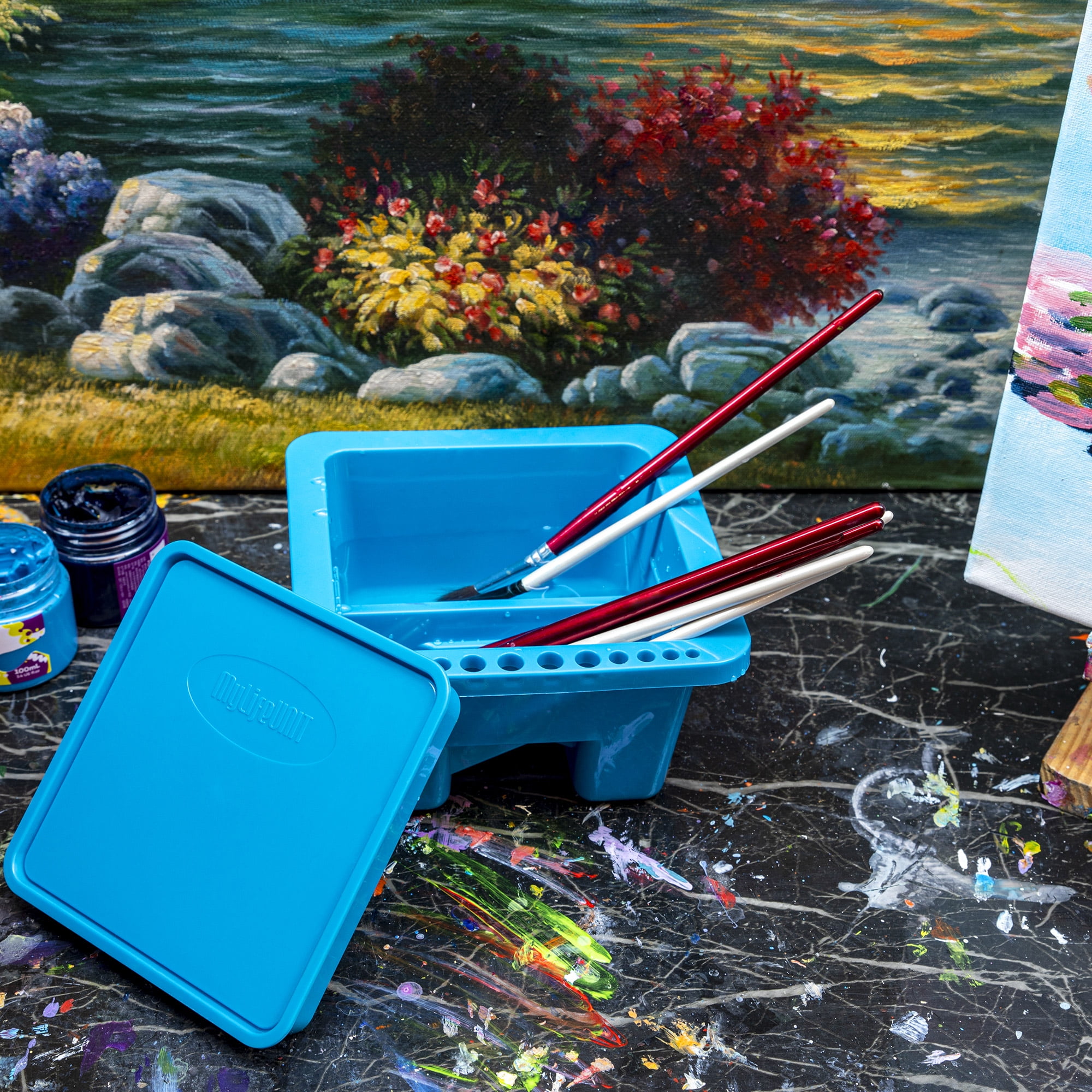 - Ribs on the bottom of paint water cup are for easy brush cleaning