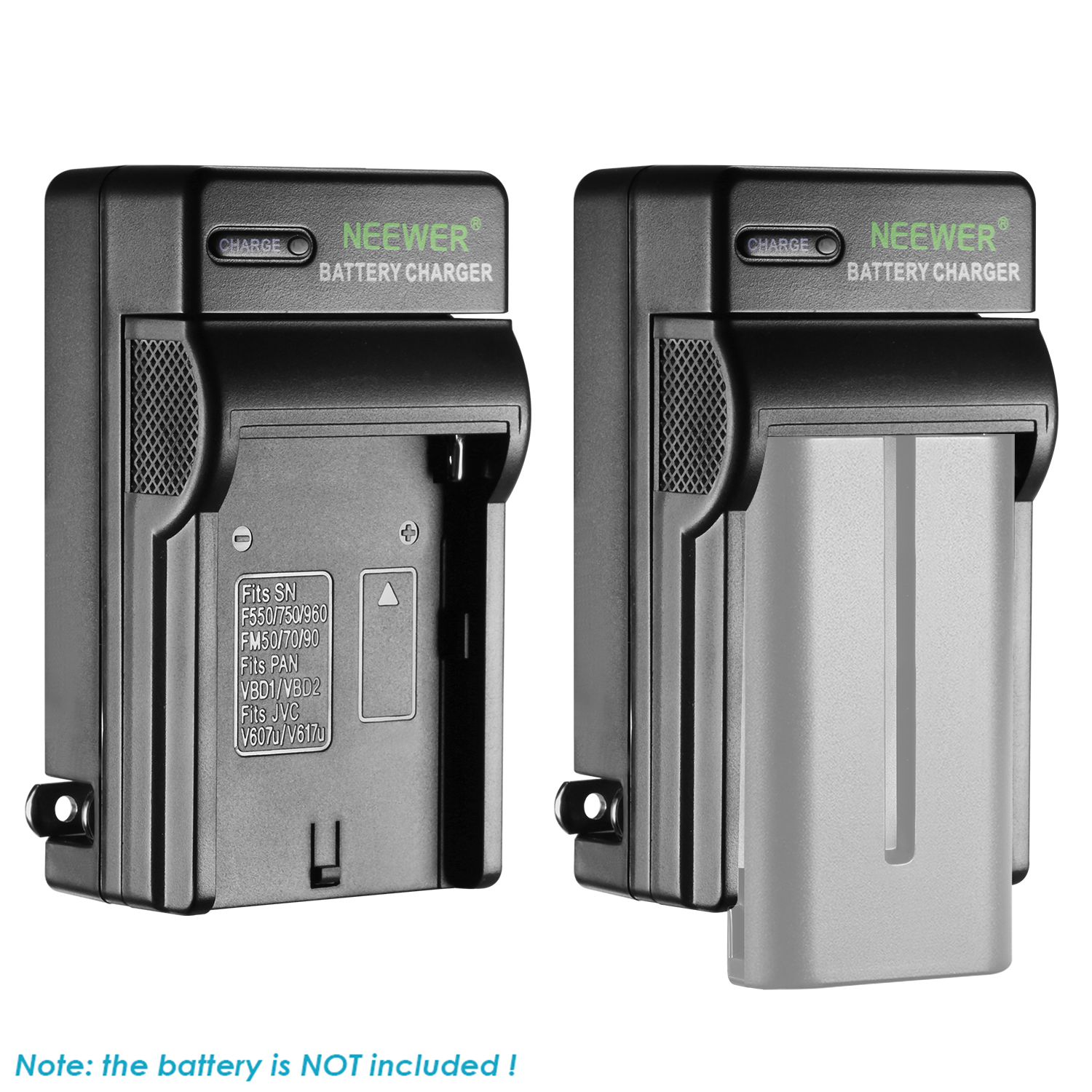 Note: To safely and successfully charge your battery, please make sure to line up the correct polarity (positive / negative) before inserting the battery onto the charger; Accessory ONLY and camera is not included.This is a new generic battery charger designed for Sony F550/F750/F960 and other compatible batteries. This convenient charger will charge your batteries at home or on the road, so you can always have a fresh battery supply for your photographic needs.Compatible with the following models: Sony TRV1/ TRV3/ 200/ 300/ 3000/ 500/ 517/ 910/ V119/ V15/ V25/ 820E/ 900E/ 2000E/ 320E/ 520E/ 720E/ 820E/ 618E/ 250E/ VX2100E/ PD150P/ 100P/ 190P/ GV-A700/ GV-D800/ FD85/ FD75/ FD81/ CCD-SC5/ SC55/ TR3/ FX1E/ 190P/ DCR-TRV9E/ 46E/ 49E/ 66E/ 67E/ 87E/ 98E/ 110E/ 120E/ 130E/ 210E/ 310E/ 317E/ 410E/ 420E/ 900E/ 940E/ 950E/ TRV33E/ NP500/ V115/ 610E/ 710E/ HVR-Z1C/ HVR-V1C/ FX7E .Quick charge with automatic constant current control prevents the battery from overcharging, short circuiting, and electrical shock.Charger is designed with a fold-able A/C plug that charges your camera / camcorder battery anywhere in the world.Specifications:Color: BlackWeight: 111 grams/ 3.95 ouncesDimension: 5.6×2.9×1.8 inches/14.3×7.6×4.7 centimetersOutput voltage: DC 8.4v 600mAA/C power supply input voltage: AC100V~240V, 50/60Hz Max 150mACharger is suitable for: Sony NP-F550/F750/F960/F330/F570; PA-VBD1, PA-VBD2 BatteriesPackage Content:1 x AC Wall ChargerNeewer AC Wall Charger Battery Charger for Sony NP-F550/F750/F960/F330/F570 PA-VBD1 PA-VBD2 Batteries