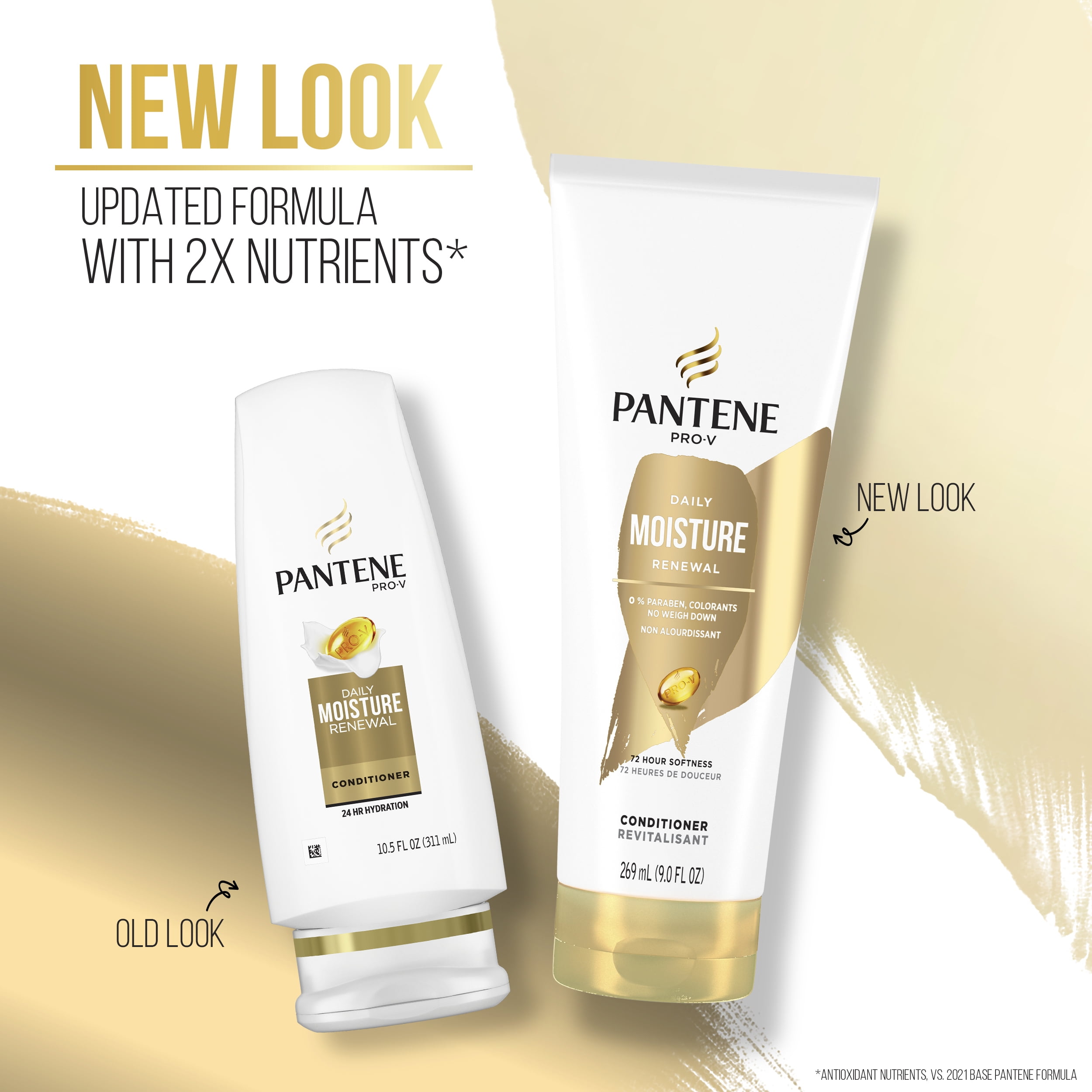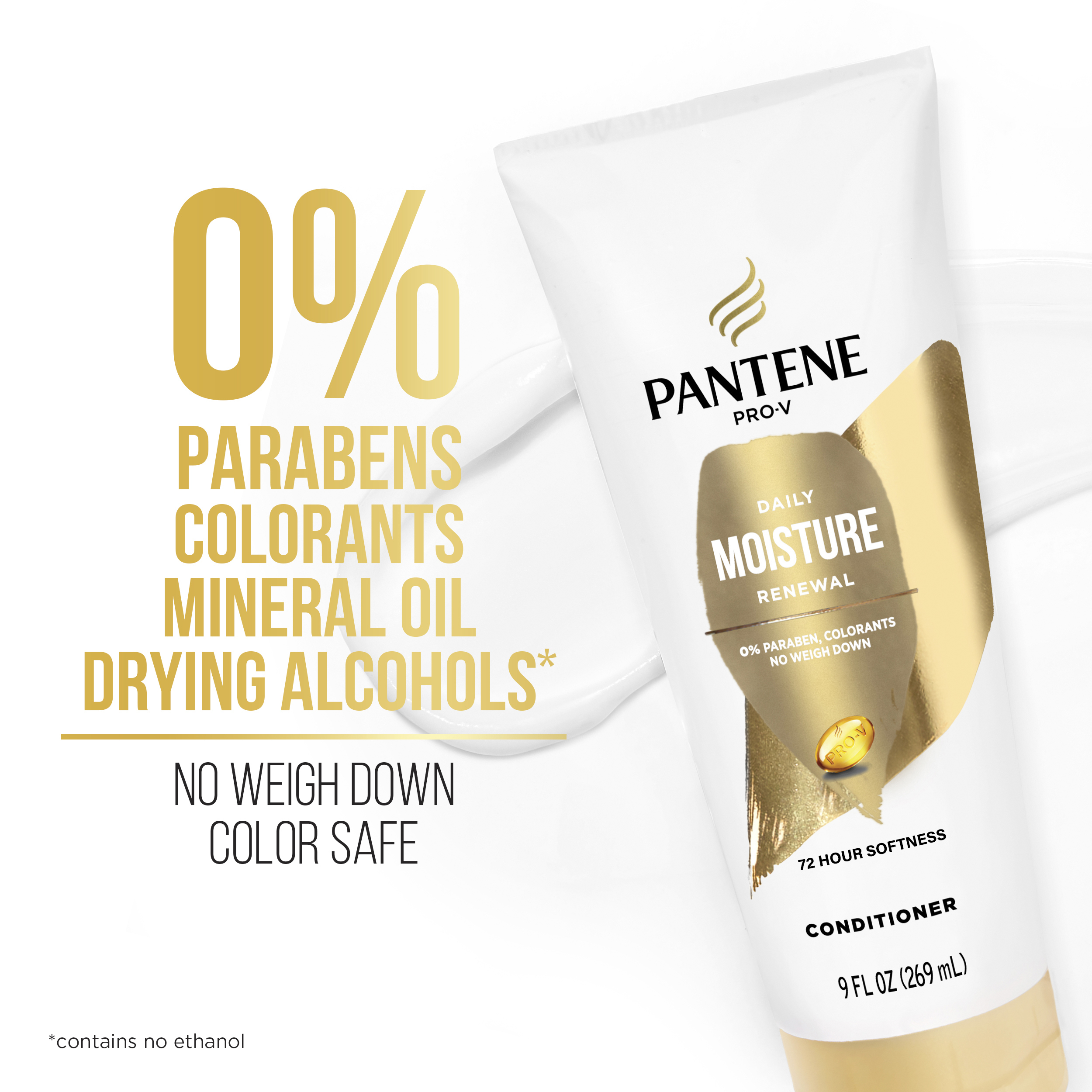 HARD WORKING, LONG LASTING Your haircare should work as hard as you do. Pantene Pro-V Daily Moisture Renewal Conditioner visibly replenishes dry hair for softness and hydration. This formula contains 2x more nutrients for 72+ hours of softness. This moisturizing conditioner is color-safe and crafted with protective anti-oxidants, strengthening lipids, and pH balancers for rich hair hydration, leaving you with strong and healthy strands. With Pantene Pro-V Daily Moisture Renewal Conditioner, say goodbye to dry locks and unleash soft, hydrated hair that looks and feels beautiful for longer. 2X MORE NUTRIENTS, LASTS FOR 72+ HOURS This Pantene Pro-V Conditioner is designed to be used with our complete Moisture Renewal Collection has 2x more nutrients to infuse your hair with optimal hydration. These powerful Moisture Renewal formulas work together to permeate every strand, fighting damage where it starts and hydrating hair from the inside out for results that last 72+ hours without washing. These formulas are crafted with Pro-V nutrients, protective anti-oxidants, Pro-Vitamin B5, and pH balancers, and made without parabens or colorants.TO USEMassage Pro-V Daily Moisture Renewal Conditioner into your cleansed, damp hair, making sure to pay special attention to your ends. Rinse thoroughly. For best results use with Pantene Pro-V Daily Moisture Renewal Shampoo. This color-safe hair moisturizer is gentle enough for everyday use on chemically-treated hair or color-treated hair, and gives you results that last for 72+ hours without washing.