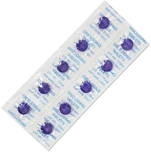 - Disclosing tablets, which are made of a harmless vegetable dye that stains plaque red, are a great way to help your kids — or even yourself — realize how much plaque they’re missing when they brush their teeth.